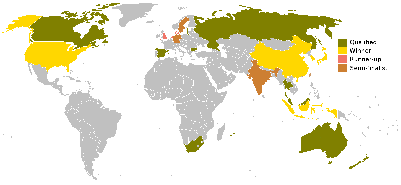 역대 대회 중 한 번이라도 결승에 진출한 적이 있는 국가는 모두 8개국이다. 대한민국은 결승에 6번 진출해 5번 모두 중국에 패했지만 2010년에 중국에 이겨 우승하였다. 그 외 결승 진출국으로는 네덜란드, 덴마크, 잉글랜드가 있으며, 4강 진출 전력이 있는 국가로 중화민국, 독일, 스웨덴이 있다.