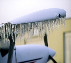 착빙(Freezing rain)은 항공기에 매우 큰 위험으로 간주되는데, 이는 매우 빠른 구조적 착빙을 유발하여 필수 구성 요소를 얼어붙게 만들기 때문이다.[1] 대부분의 헬리콥터와 소형 항공기에는 강도에 관계없이 착빙 상태에서 비행하는 데 필요한 제빙 장비가 부족하며, 심한 착빙은 대형 항공기의 가장 정교한 제빙 시스템조차 무력화할 수 있다.[1] 착빙은 항공기의 무게를 증가시킬 수 있지만, 일반적으로 위험을 초래할 만큼 충분하지는 않다.[1] 주요 위험은 얼음이 에어포일의 모양을 변화시키는 데서 비롯된다.[1]
