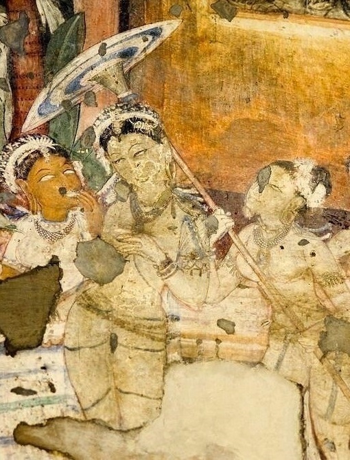 고대 인도에서는 산스크리트어 서사시 마하바라타에 우산과 관련된 전설이 전해진다. 뛰어난 궁술가 자마다그니가 태양의 뜨거움 때문에 화살 회수가 늦어진 아내 레누카를 위해 태양에게 활을 쏘려 하자, 태양이 자비를 구하며 레누카에게 우산을 주었다는 이야기이다.[19] 또한 굽타 제국(서기 320년경) 시대의 아잔타 석굴 벽화에는 우산을 든 여인의 모습이 그려져 있다.