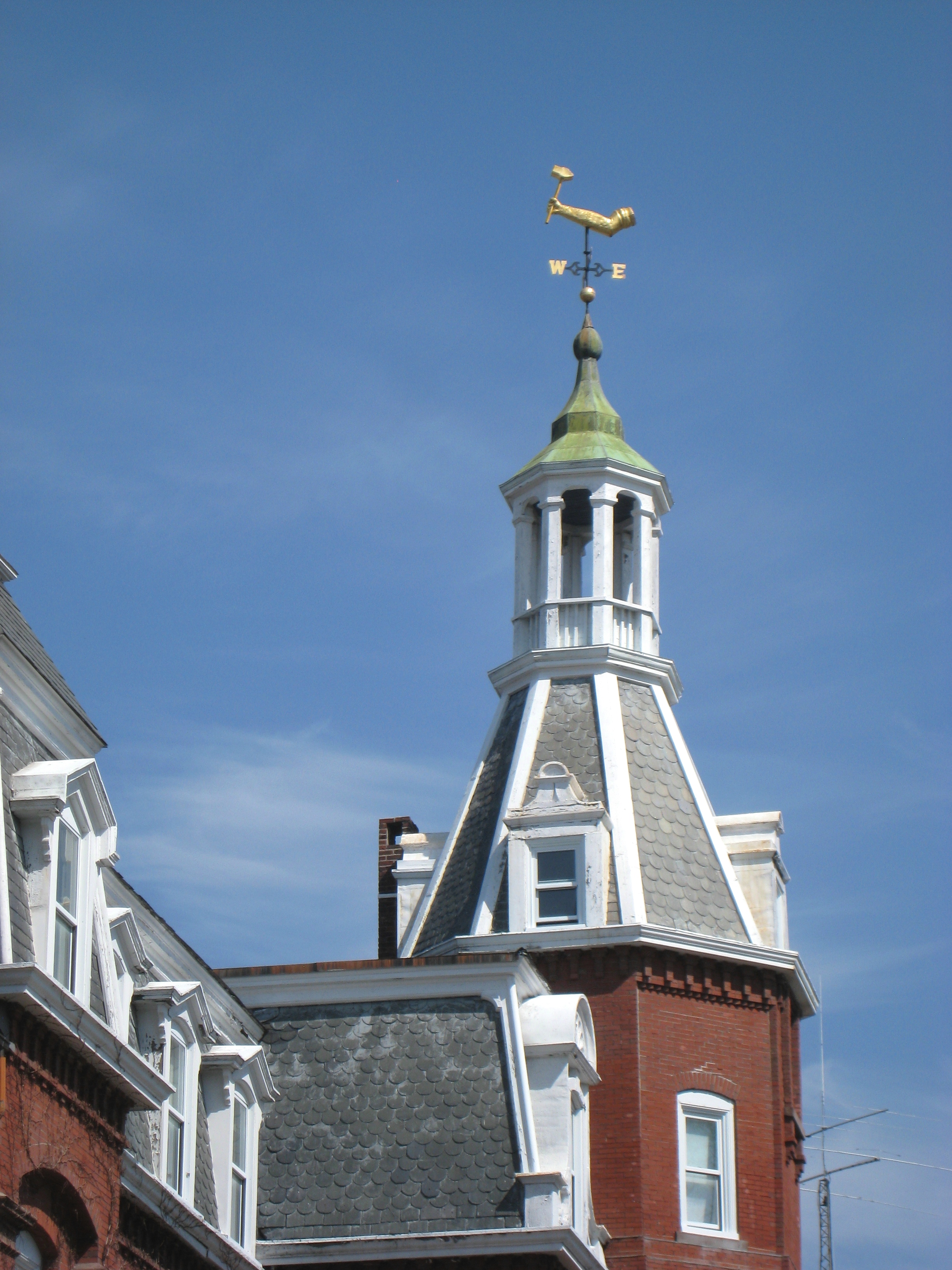 오래된 WPI 로고에 표시된 '두 개의 탑'은 보인턴 홀의 시계탑과 워시번 샵의 팔과 망치 풍향계를 보여준다. 1868년에 완공된 이 두 건물은 대학 최초의 시설로, 보인턴 홀에는 교실, 강당, 기숙사가, 워시번 공방에는 연구실, 실험실, 실습실이 있었다[59][60]。두 개의 탑은 그 건물의 기능에서 교훈인 "Theory and Practice"(이론과 실천)의 상징이 되었다. 워시번 공방의 탑 위에 있는 풍향계는 교표에 그려진 망치를 든 팔의 형태를 하고 있다. 원래 풍향계는 1975년 10월에 도난당했으며, 아직 회수되지 않았다.