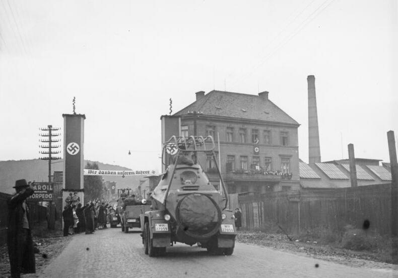 당시 아시히(독일어: Aussig)로 알려졌던 이 도시는 나치즘 운동의 초기 중심지 중 하나였다. 오스트리아의 독일 노동자당(Deutsche Arbeiterpartei in Österreichde)이 1903년 11월 15일에 이곳에서 창설되었는데, 이는 이후 수데텐 독일인당과 오스트리아의 국가 사회주의 운동으로 이어지는 뿌리가 되었다. 관련된 서적들은 1918년 체코슬로바키아 제1공화국이 수립된 이후에도 우스티나트라벰에서 계속 인쇄되었다.1930년 인구 조사에 따르면 우스티나트라벰에는 43,793명의 주민이 거주했으며, 이 중 독일인이 32,878명, 체코인 또는 슬로바키아인이 8,735명, 유대인이 222명, 러시아인이 16명, 헝가리인이 11명이었다.[12]