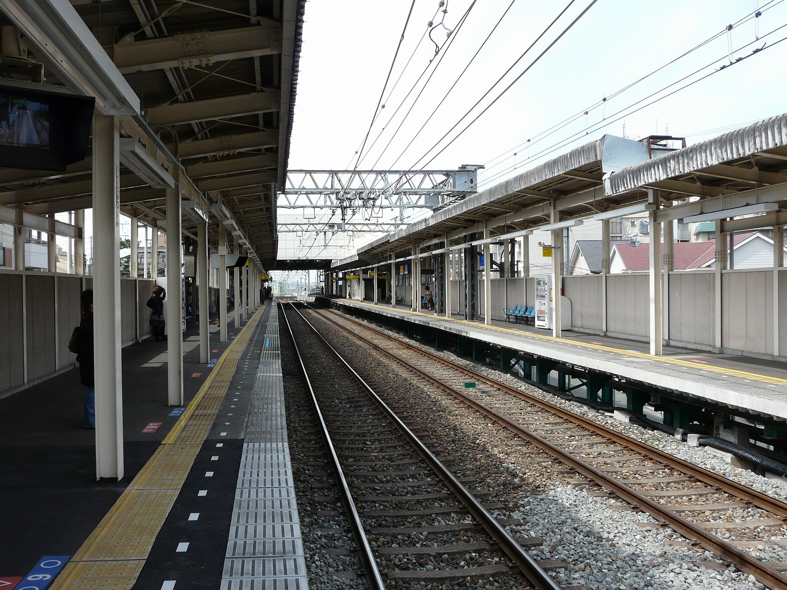 승강장 유효장은 원래 19m급 한신 차량 6량 편성에 대응했으나, 2008년에 승강장을 오사카 방면으로 연장하는 공사를 하여 21m급 긴테쓰 차량 6량 편성에도 대응하는 130m 정도가 되었다. 2020년 3월부터 토요일·휴일 본선에서 쾌속 급행 8량 편성 운행이 시작됨에 따라, 2019년부터 2020년 3월에 걸쳐 오사카 방면으로 40m 정도를 추가 연장하여 170m 정도가 되어 긴테쓰 차량 8량 편성에도 대응할 수 있게 되었다. 새로 연장한 부분에는 지붕이 설치되지 않아, 승강장에 지붕이 있는 것은 고베 방면 6량분뿐이다.
