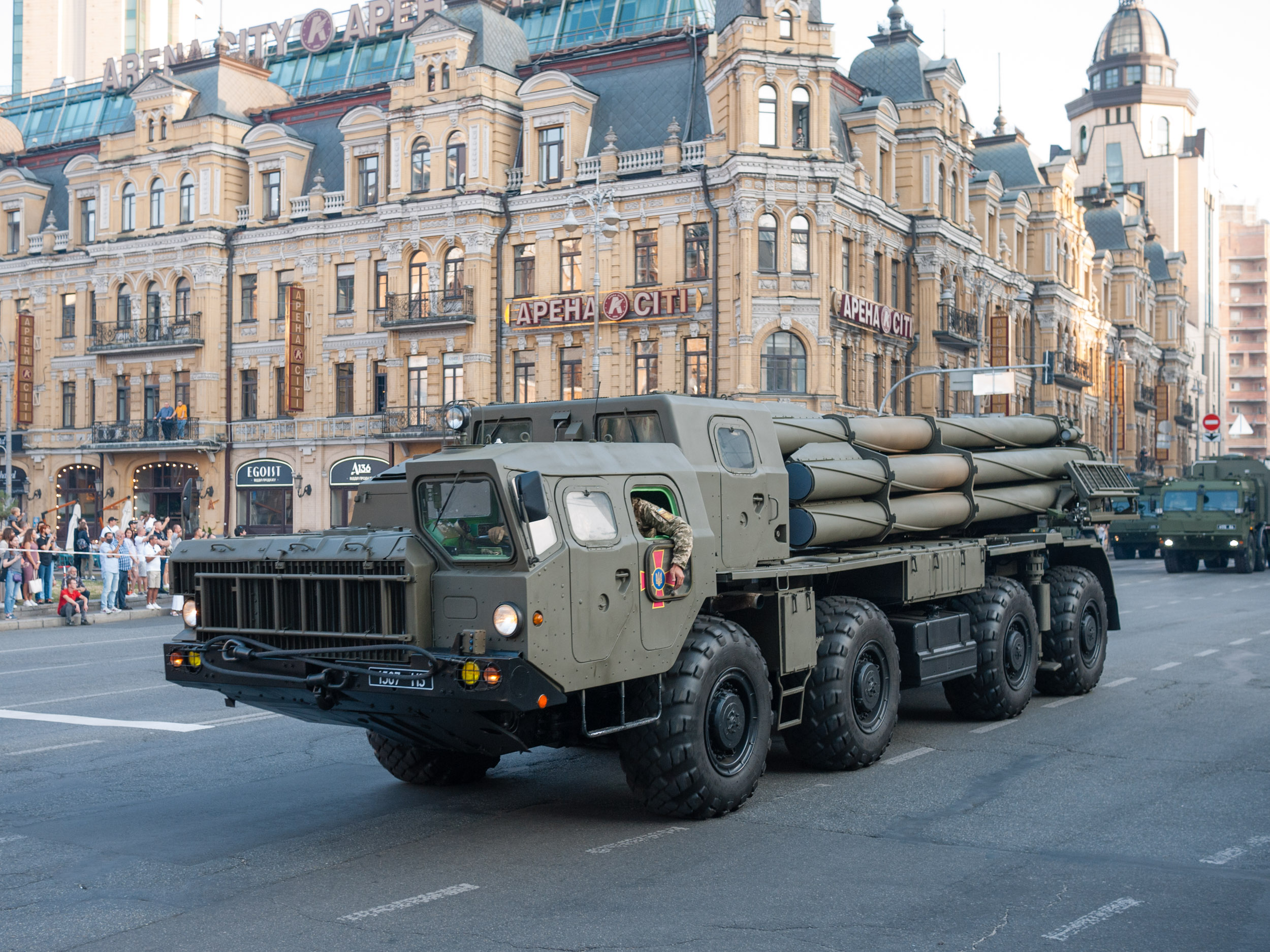 키예프에서 열병하는 우크라이나 BM-30 스메르치 중(重) 다연장 로켓 시스템