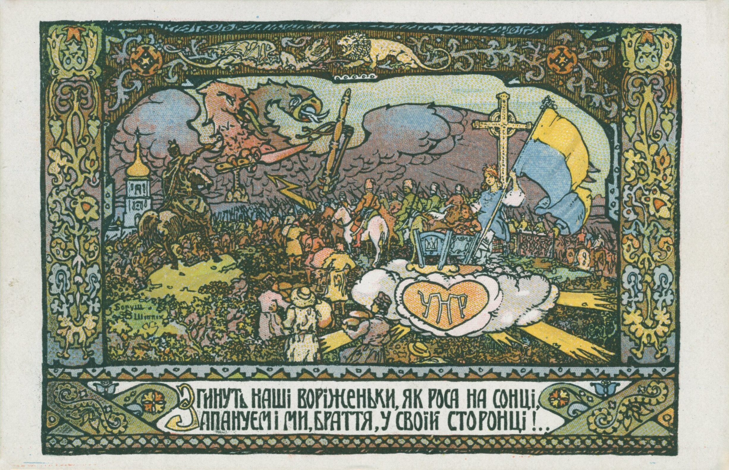 우크라이나 인민 공화국이 1918년에 수립한 공식 깃발은 파란색-노란색이었다. 공식 깃발이 연한 파란색-노란색이라는 것을 나타내는 지표로, 연한 파란색-노란색이 될 함대 깃발에 대한 결정이[24] 언급되기도 한다.[25] 우크라이나 인민 공화국의 여러 다른 군기도 채택되었다.[26]
