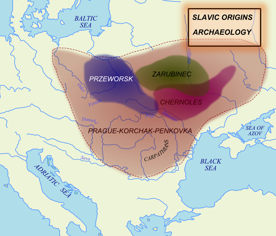 동슬라브족은 5세기부터 투르크 민족 국가인 사바르 카간국, 아바르 카간국의 지배를 받았다. 이후 북게르만족 루스인의 초기 국가인 루스 카간국에 영향을 준 하자르 카간국에 정복되었다. 하자르 카간국의 영향으로 동슬라브인 정체성이 형성되기 시작했고, 8세기에서 9세기에 루스 카간국이 등장했다. 동슬라브족은 튀르크족의 지배를 받으며 튀르크 문화의 영향을 받아 서유럽과는 다른 문화적 특징을 가지게 되었다.[320]동슬라브족은 현재의 우크라이나 북부, 벨라루스, 러시아 지역에 거주하며 고대 동슬라브어를 사용했다. 이들은 삼림 지대에서 농경 생활을 했으며, 서쪽에는 발트족, 동쪽과 북쪽에는 핀족이 있었다. 남쪽 흑해 북해안의 스텝 지역에는 유목화된 동슬라브족들이 거주했으며, 이들은 튀르크인의 지배로 투르크어족에 동화되었다. 돌궐 붕괴 이후에는 볼가강 하류의 하자르 한국에 정복당했다.