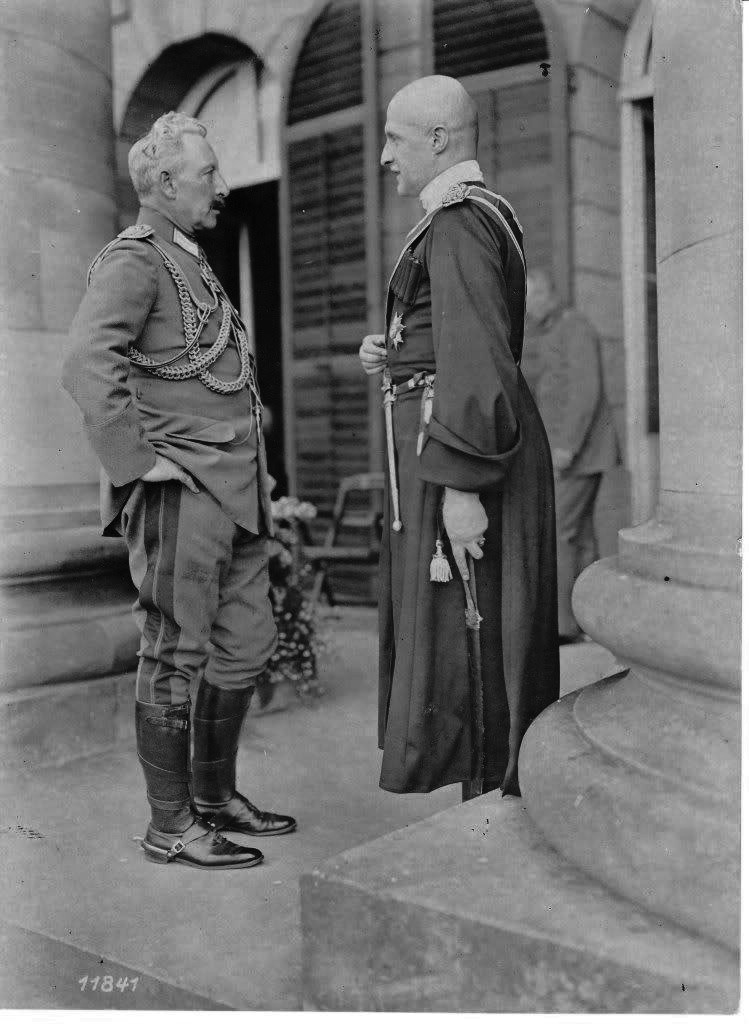 1918년 8월 스파에 있는 최고 사령부에서 열린 회의에서 독일 제국 황제 빌헬름 2세 (왼쪽)와 헤트만 스코로파츠키 (오른쪽).