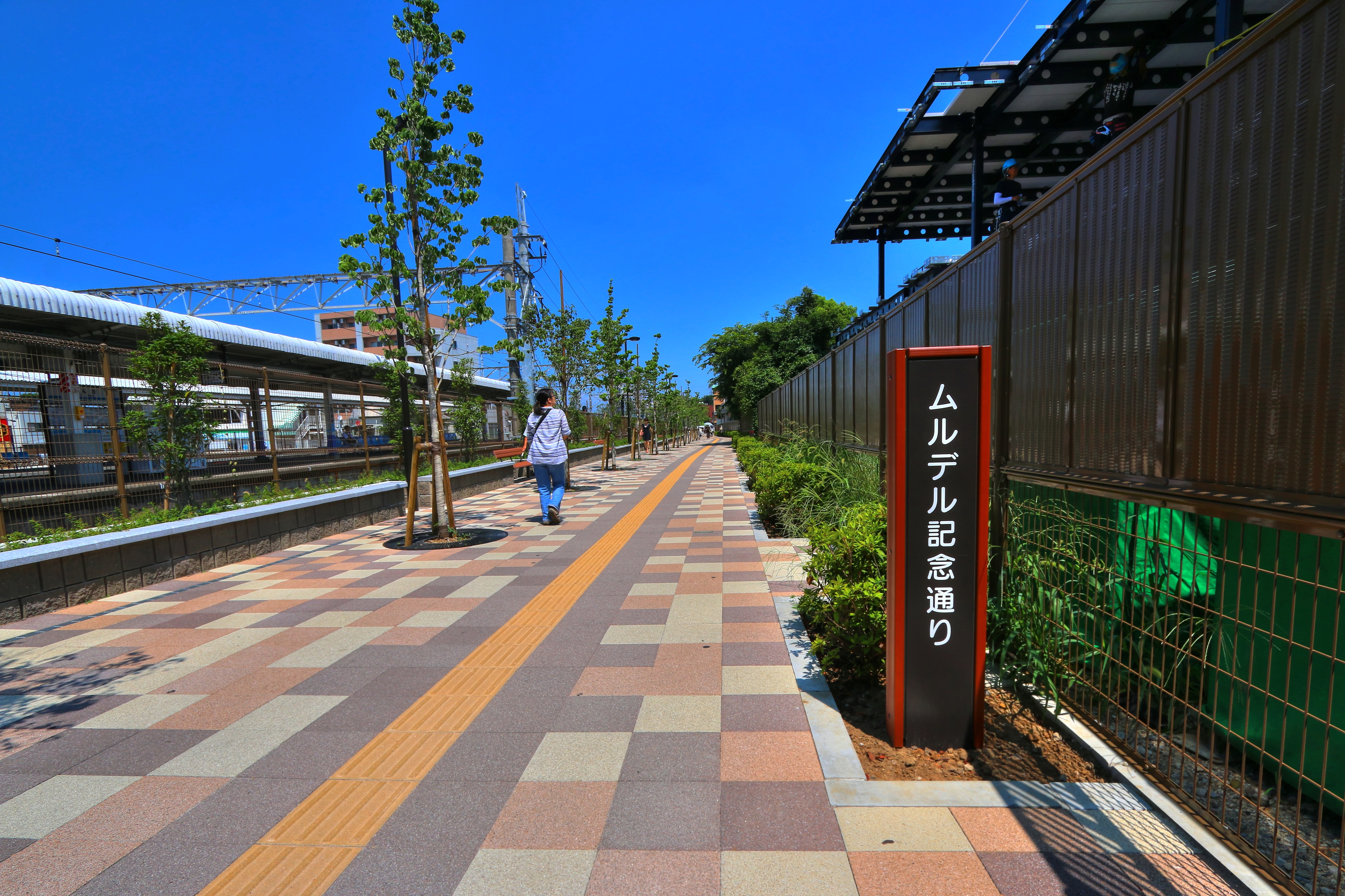 현재 역사는 2013년 7월 13일부터 단계적으로 사용이 시작되었다. 역사 내부에는 개찰구 층과 동서 출구, 승강장 사이를 각각 연결하는 엘리베이터와 에스컬레이터가 설치되어 있다. 완성 초기에는 서쪽 출구만 임시로 사용되었으며, 2013년 12월 27일부터 동쪽 출구 및 동서 자유 통로의 사용도 시작되었다.[4] 교상역사화에 따라 동쪽 출구 앞 광장이 정비되었고, 동쪽 출구와 후레아이 다리를 잇는 보행자 전용 도로가 신설되었다.