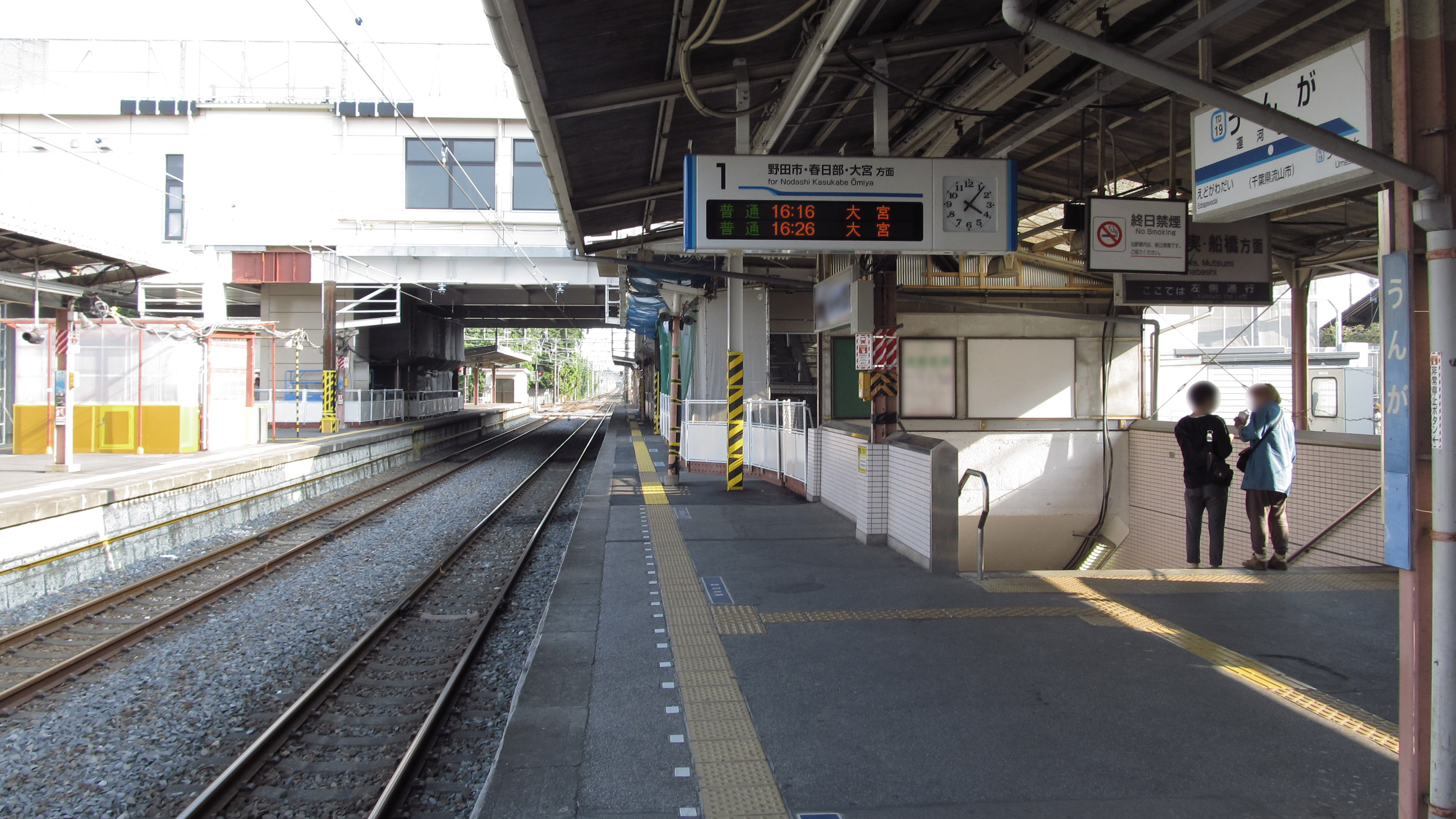 구 역사는 오미야시 방면 단선 승강장 쪽에 있었으며, 가시와시 방면 및 중간선의 섬식 승강장과는 지하도로 연결되어 있었다.
