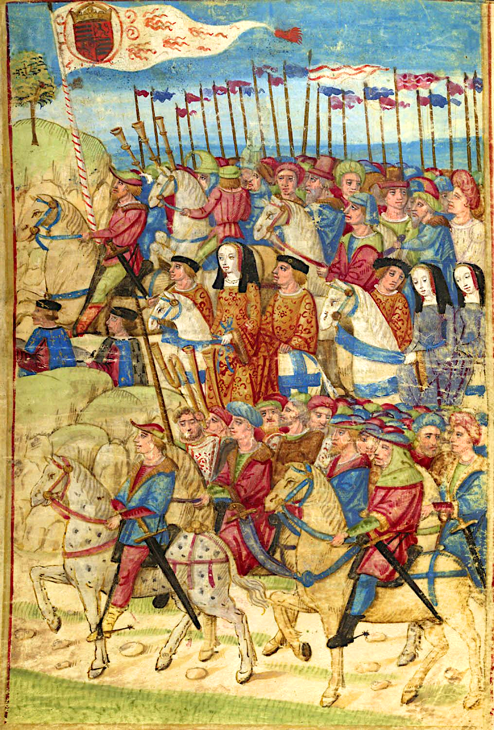 ''보헤미아의 왕''. 보헤미아 왕이자 포르투갈 문장집 ''Livro do Armeiro-Mor'' (1509)의 fol. 33r에 "제국의 대사배"로 묘사된 울라슬로 야기에우워의 이상적인 초상화