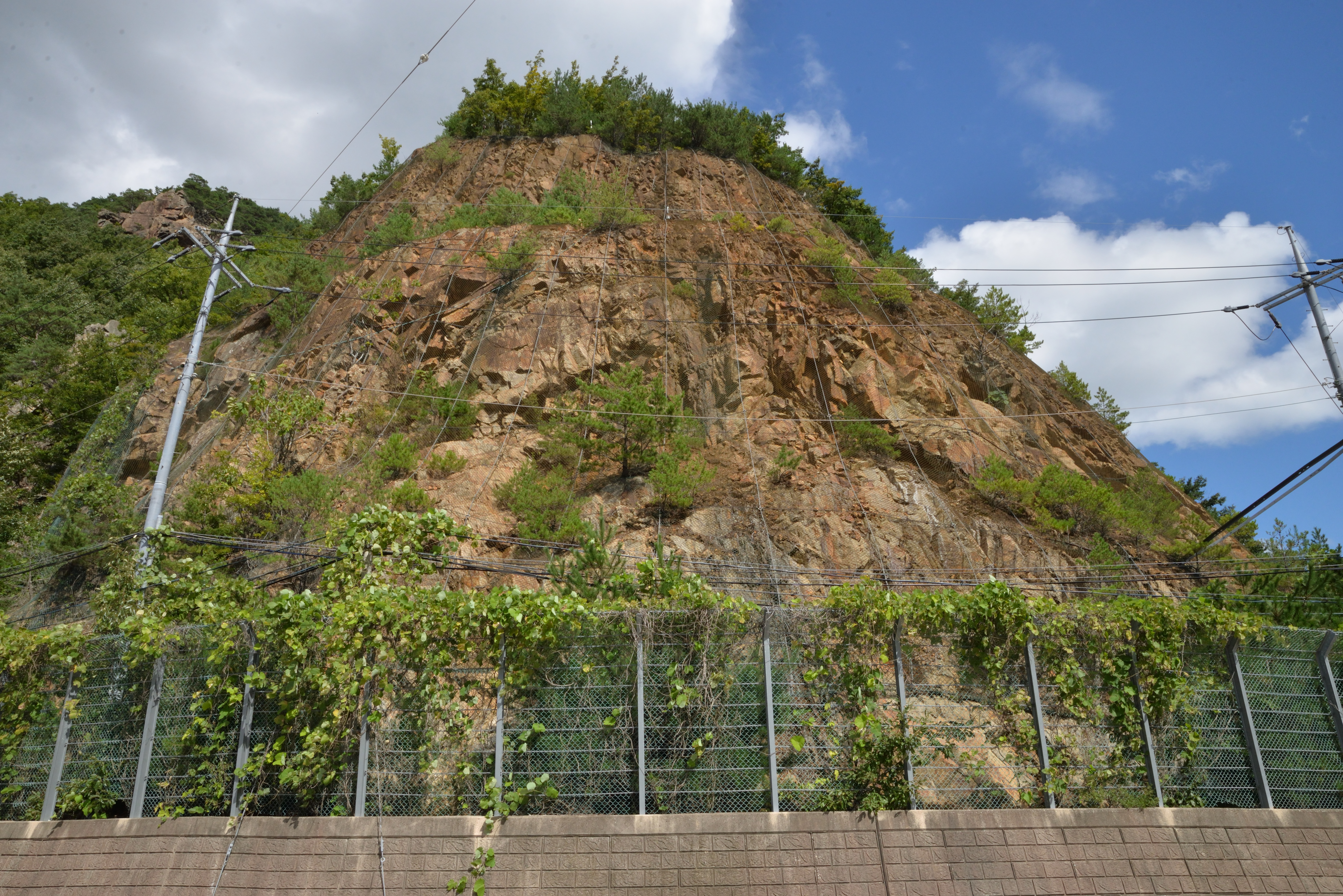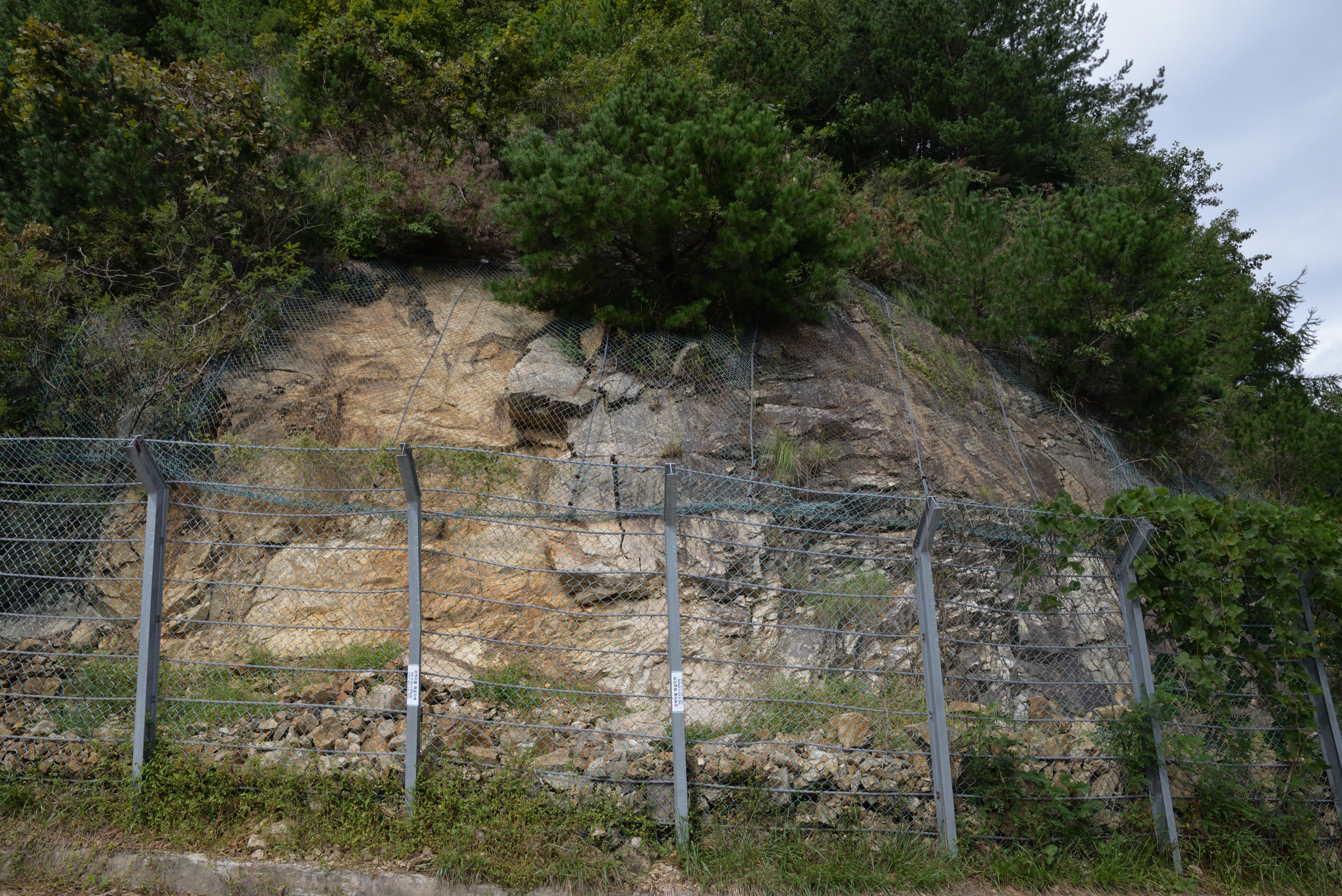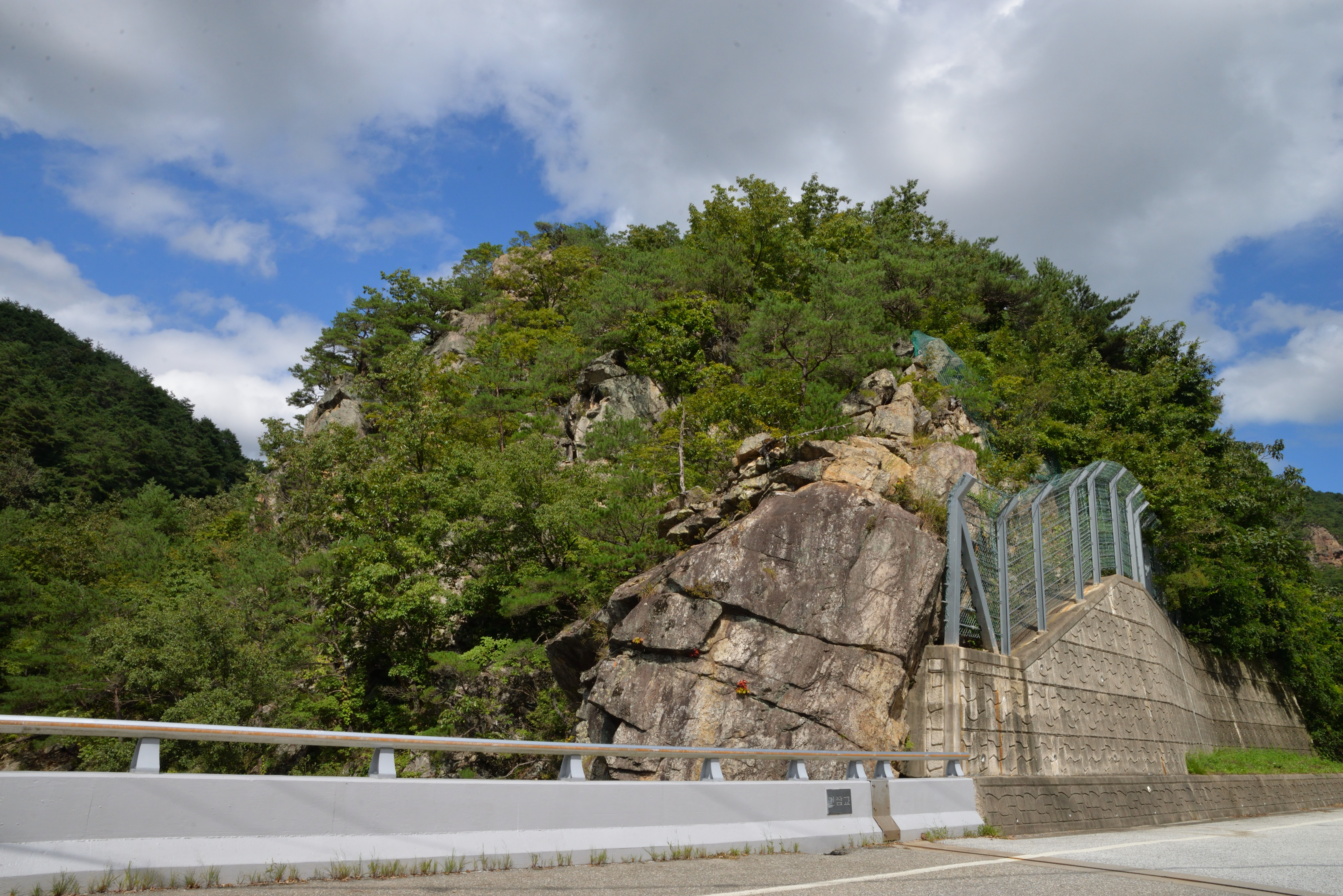 - 북면 하당리 나그네재 도로변 사면(N37°02'24.21", E129°19'37.73")에는 홍제사 화강암 내에 염기성 암맥이 2매가 관찰되며 이들을 주향 북동 49°/경사 북서 43°자세의 단층이 절단하는 노두가 있다.[1]
