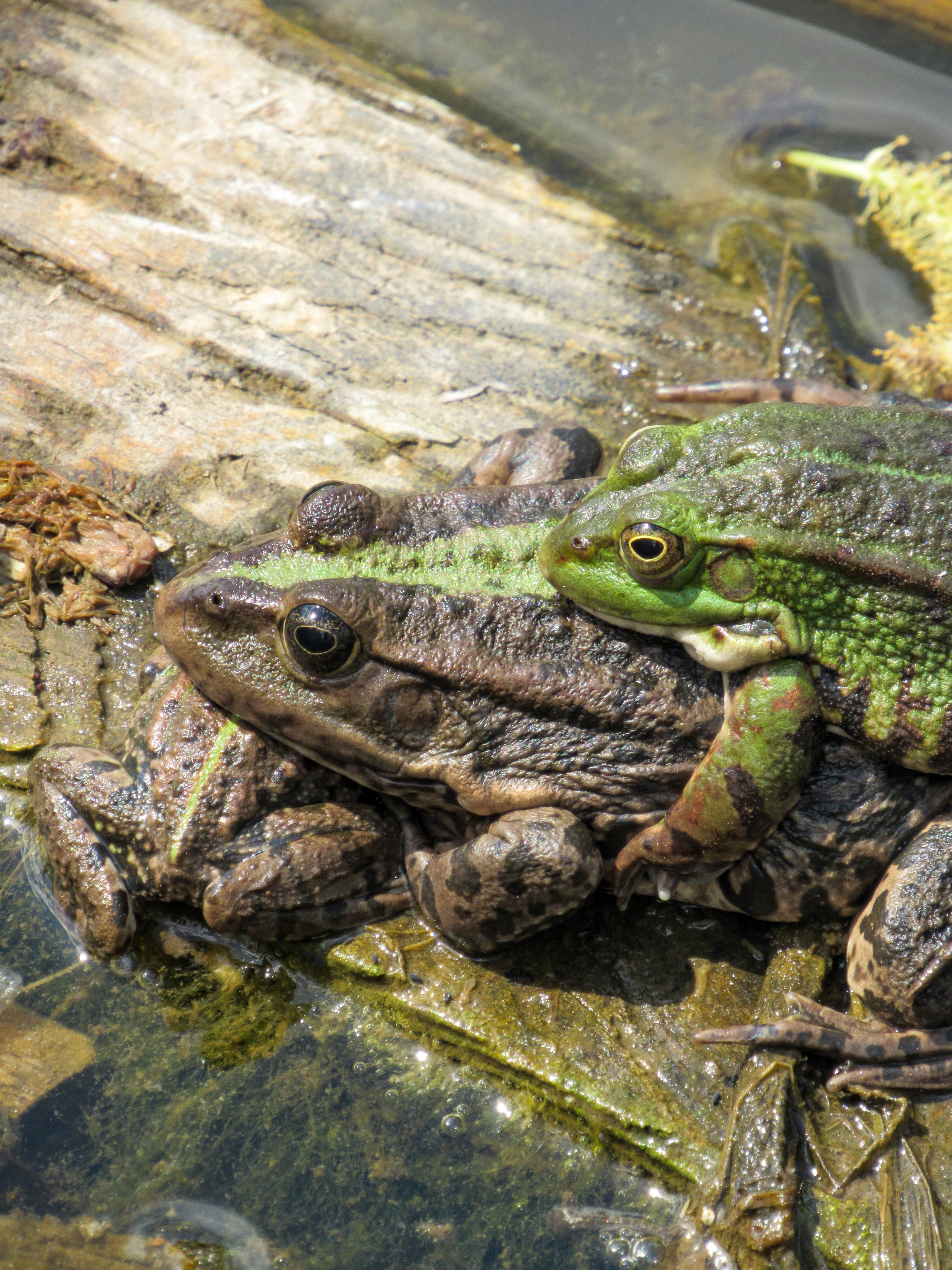 이 잡종은 다시 부모 종인 늪개구리나 산개구리와 번식하여 잡종 개체군을 유지한다.