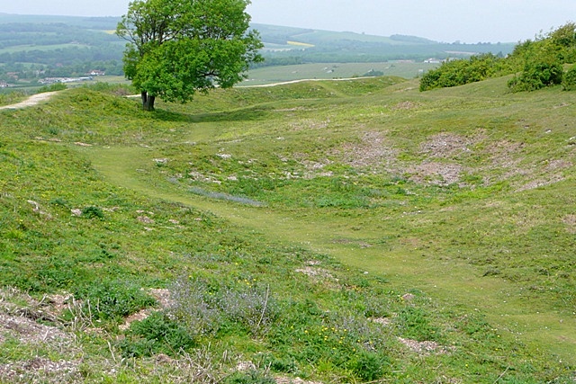 시스버리 링의 발굴 잔해. 워싱턴 상공의 사우스 다운스 지역은 기원전 4000년경부터 영국에서 가장 오래되고 가장 큰 부싯돌 채굴 지역이었다.