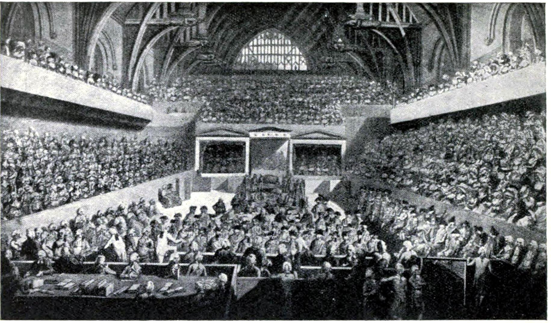 1785년, 10년간의 근무를 마치고 사임한 워런 헤이스팅스는 영국으로 돌아와 하원에서 탄핵당했다. 혐의는 인도에서의 횡령, 강탈, 강압, 그리고 마하라자 난다쿠마르의 사법 살해 등이었다.[30] 처음에는 성공 가능성이 낮다고 여겨졌지만, 에드먼드 버크를 포함한 하원의원들이 기소를 진행했다. 인도에서 결투로 헤이스팅스를 부상시켰던 필립 프랜시스 경,[31] 찰스 제임스 폭스, 리처드 브린즐리 셰리던이 이를 격려했다. 기소장이 낭독되었을 때, 20개의 혐의를 읽는 데 에드먼드 버크는 이틀이나 걸렸다.[32]
