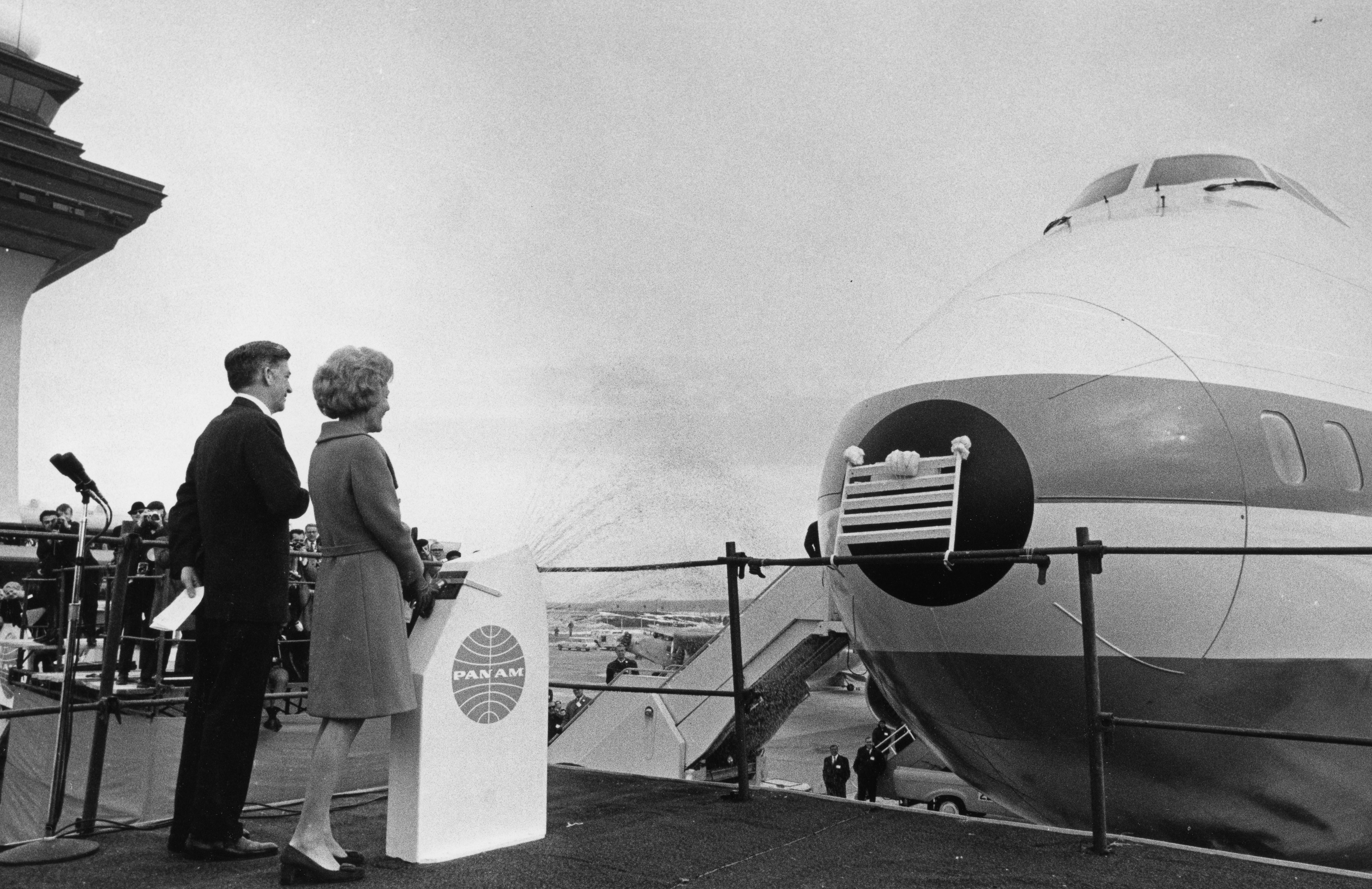 1970년 1월 15일, 퍼스트 레이디 팻 닉슨은 보잉 747 항공기에 세례를 주며 점보 제트 시대를 열었다.[32][33]