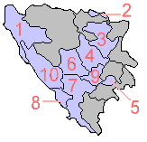 워싱턴 협정에 따라 세워진 보스니아 연방 내 10개 칸톤의 지도