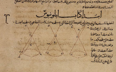 아폴로니우스의 저술은 아랍어로 번역되었으며, 이슬람 수학자들은 이 이론을 응용했는데, 특히 페르시아의 수학자이자 시인인 오마르 까이얌[33]은 원뿔곡선을 이용하여 삼차 방정식을 기하학적으로 푸는 방법을 발견했다.[34][35]