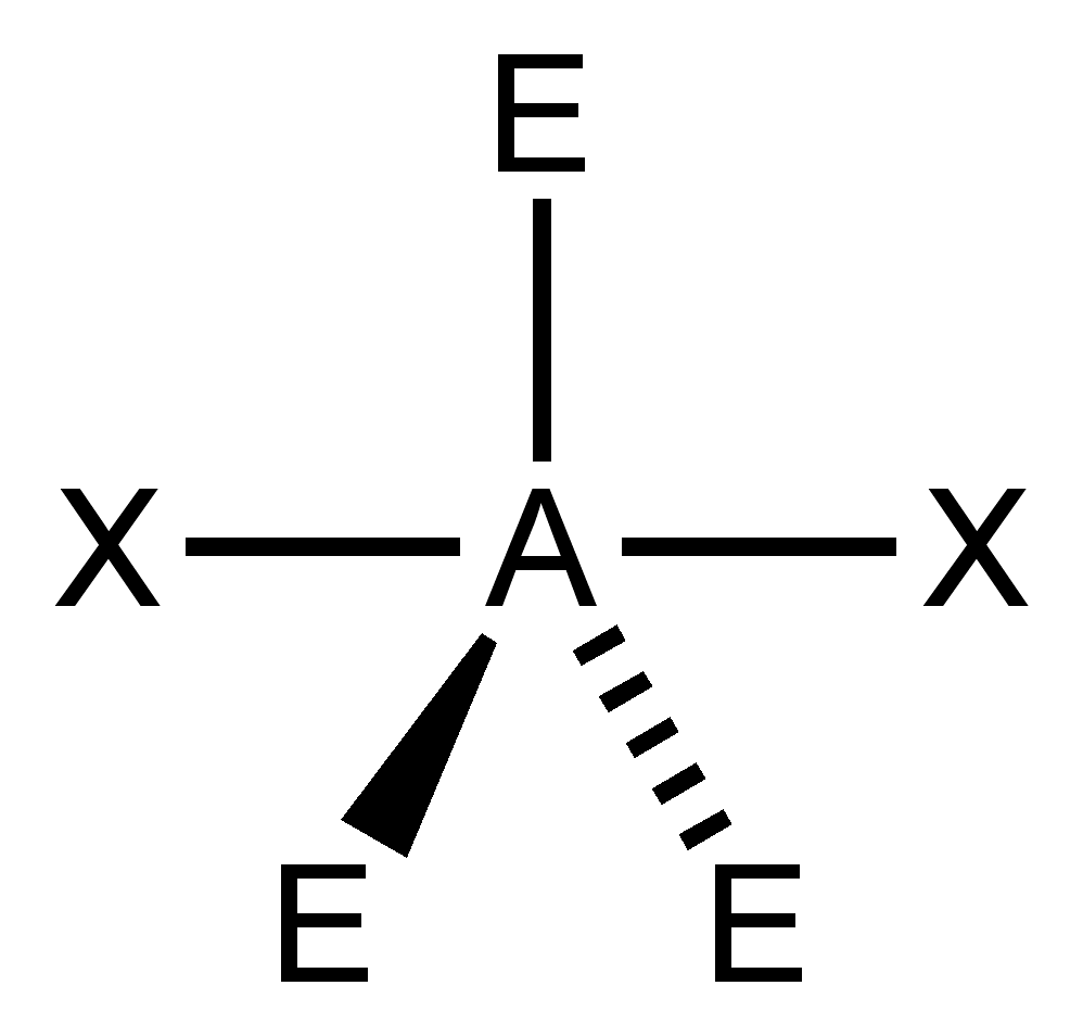 원자가 껍질 전자쌍 반발(VSEPR) 이론에서 전자 개수를 세는 데는 일반적으로 "AXE 방법"이 사용된다. 이 표기법에서 A는 중심 원자를 나타내며, X는 중심 원자에 결합된 리간드를, E는 중심 원자의 고립 전자쌍을 나타낸다.[9] X와 E의 총합은 입체수라고 불린다.[49]