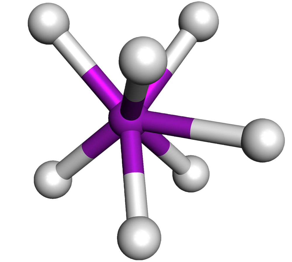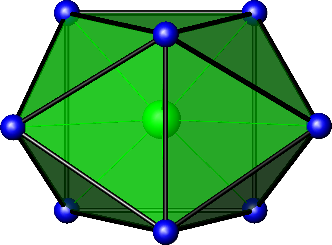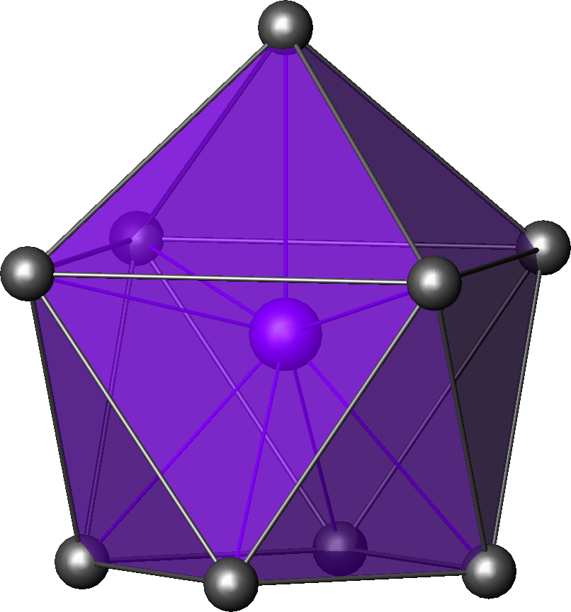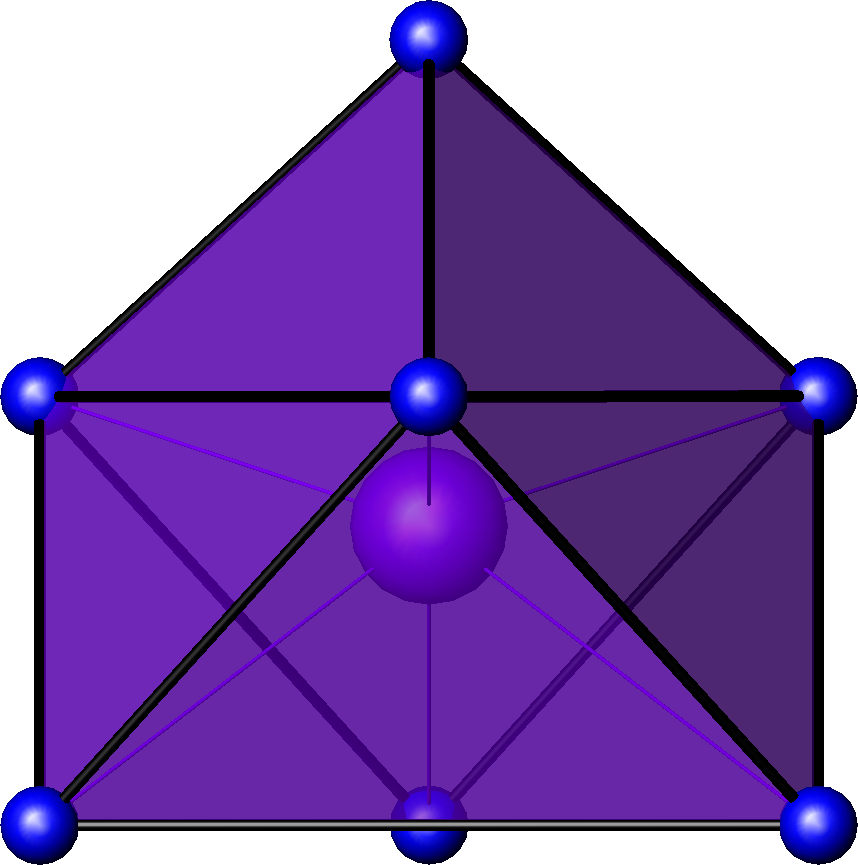 삼각쌍뿔은 6개의 정삼각형 면, 5개의 꼭짓점, 9개의 모서리를 가진 존슨 다면체이자 델타다면체로, 두 정사면체를 밑면끼리 결합한 형태이며, 분자 기하학, 색채 이론 등 다양한 분야에 응용된다. - 분자기하 - 배위수