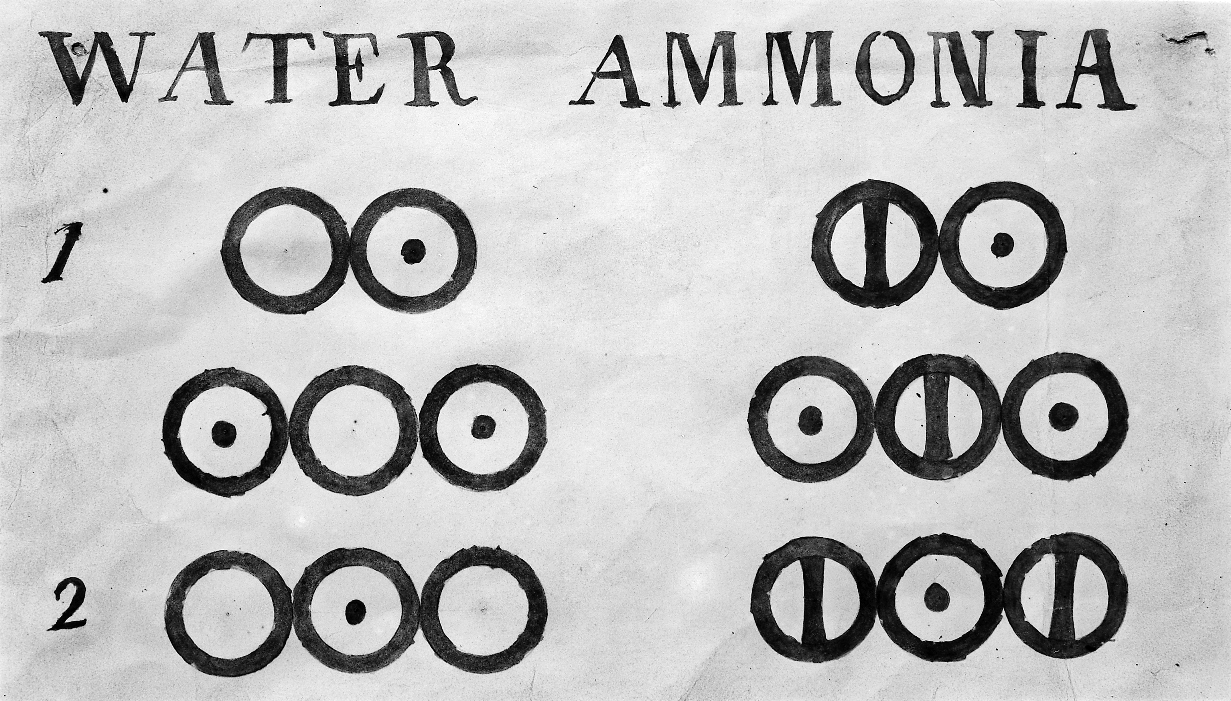 돌턴은 여러 일반적인 화합물의 조성에 대한 상대적 무게 목록을 제공하며 다음과 같이 요약했다.