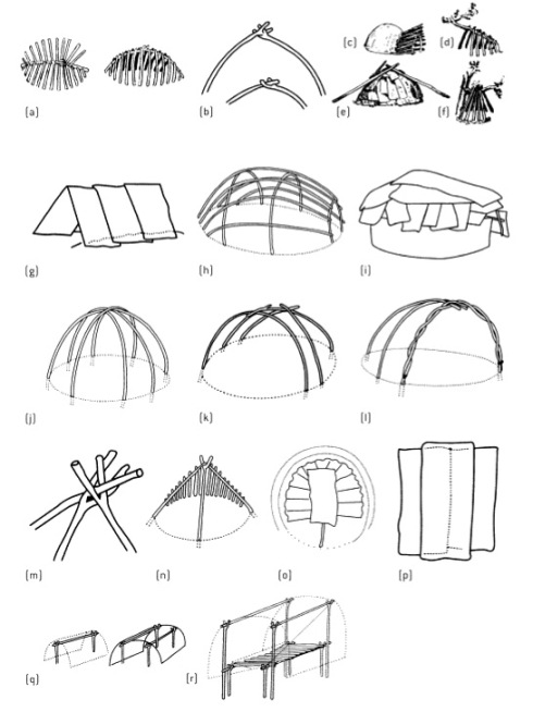 미시간, 퀘벡, 온타리오 북부의 미크마크족, 크리족, 알곤킨족과 같은 반유목민들은 일반적으로 위그웜에서 살았다. 나무 골조 구조는 나무껍질, 갈대 또는 짠 매트로 덮여 있으며, 일반적으로 원뿔 모양이지만 때로는 돔 모양이기도 했다. 이 그룹은 몇 주 또는 몇 달마다 거주지를 옮겼는데, 이때 구조물의 외부 덮개만 가지고 다니고 무거운 나무 프레임은 제자리에 남겨두었다. 나중에 해당 위치로 돌아오면 기존 프레임을 재사용할 수 있었다.