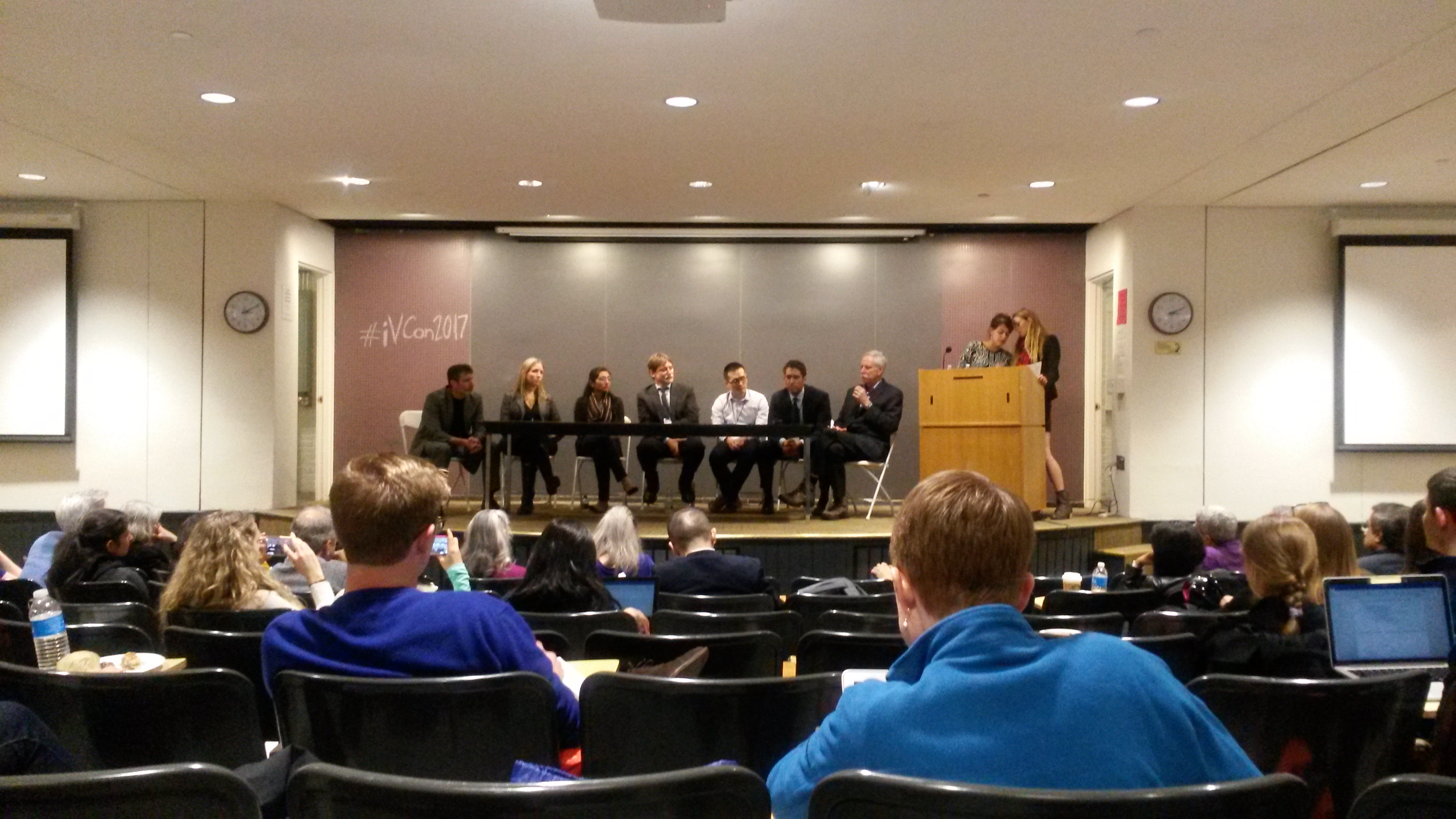 윌릿(오른쪽, 마이크를 들고 있음)이 2017년 하버드 대학교에서 열린 비건 영양 패널에 참석하고 있음