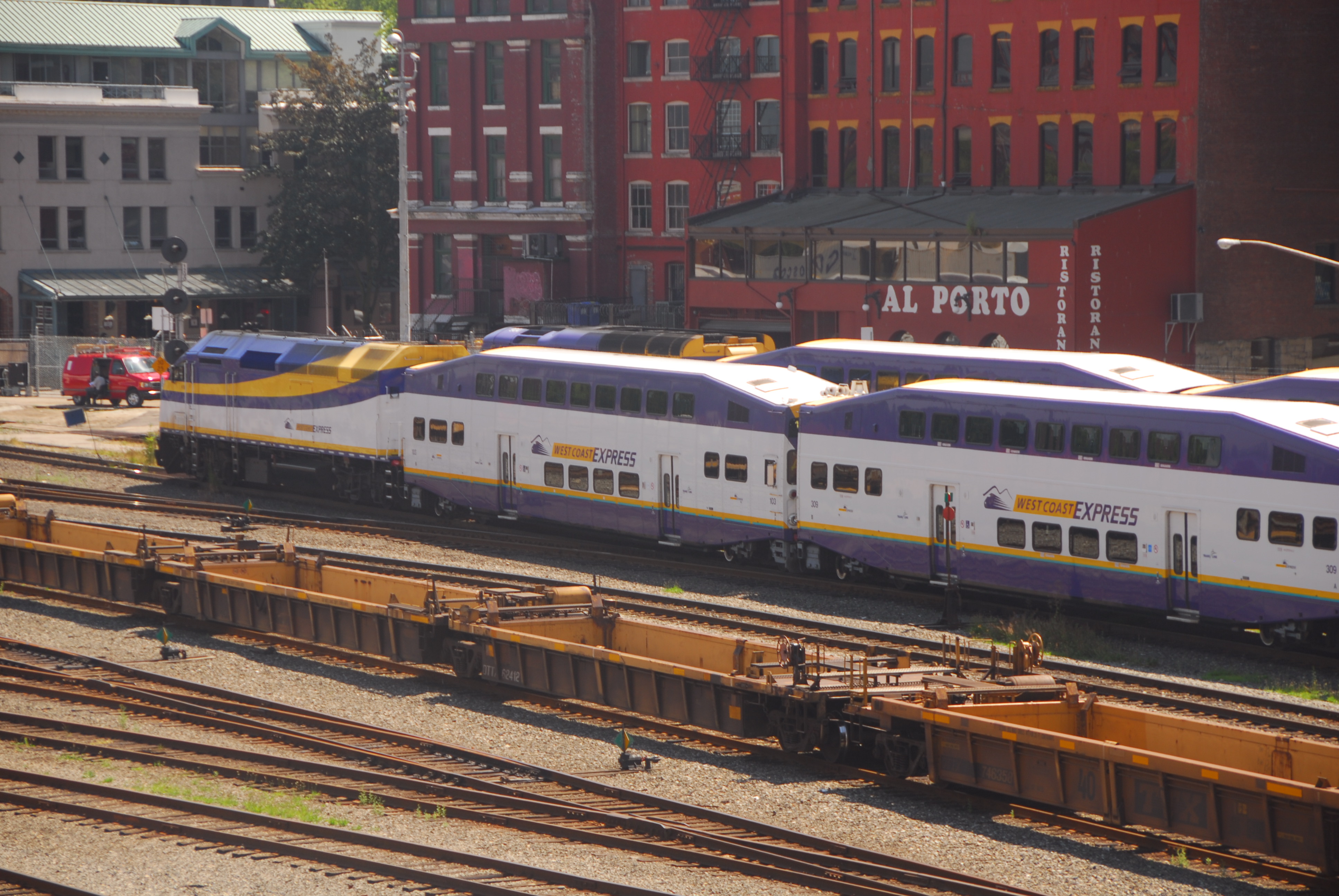 웨스트 코스트 익스프레스는 디젤 기관차와 객차로 구성된 열차를 운행한다. 각 열차는 제너럴 모터스(General Motors)/EMD F59PHI 디젤-전기 기관차 1량과 4량에서 10량 사이의 봄바디어 트랜스포테이션(Bombardier) 바이레벨 여객 객차로 구성된다. 백업용으로 MPI MP36PH-3C와 EMD F59PH도 운행한다.