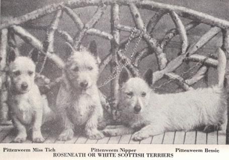 아길 공작 조지 캠벨(제8대 아길 공작)는 "로즈니쓰 테리어"라는 흰색 스코틀랜드 테리어 품종을 육성했다.[29] 파이프 출신의 아메릭 에드윈 플랙스만 박사는 흰색 강아지를 낳는 암컷 스코티시 테리어를 이용하여 "피텐윔 테리어" 혈통을 개발했다.[29] 플랙스만 박사는 흰색 스코티시 테리어를 생산하는 데 전념했으며, 19세기 말에는 흰색 스코티시 테리어를 위한 개 쇼 클래스가 추가되었다.[30]