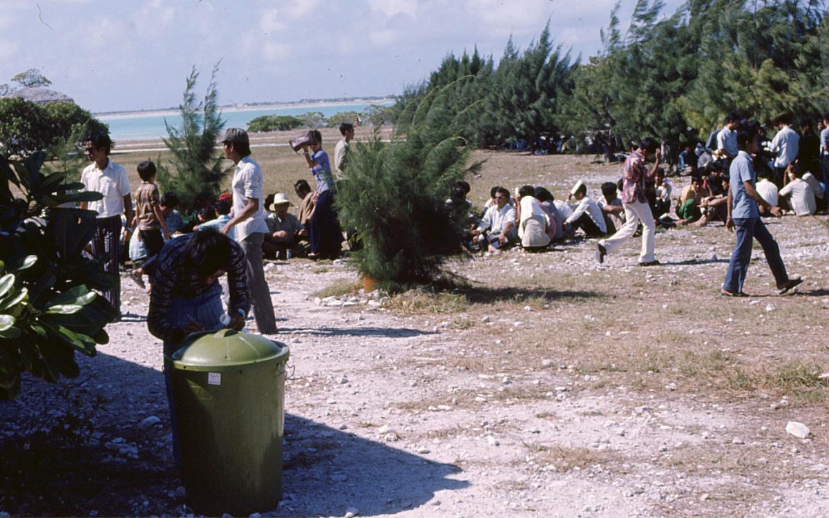 1975년 봄, 웨이크섬의 인구는 군인, 정부 직원, 민간 계약직 251명으로 구성되었으며, 그들의 주요 임무는 중태평양 비상 활주로로서의 비행장 유지를 담당하는 것이었다. 사이공 함락이 임박하자(베트콩/북베트남군에게), 제럴드 포드 대통령은 미군에게 베트남 난민들을 대피시키는 ''뉴 라이프 작전''을 지원하라는 명령을 내렸다. 원래 계획에는 필리핀의 수빅 베이와 괌이 난민 처리 센터로 포함되었지만, 대피를 원하는 베트남 사람들의 수가 많아 웨이크섬이 추가 장소로 선정되었다.[124]