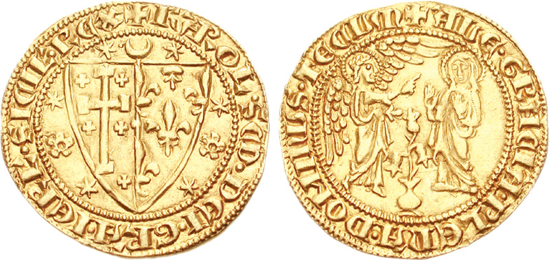1285년 동전, 샤를을 예루살렘과 시칠리아의 왕으로 묘사