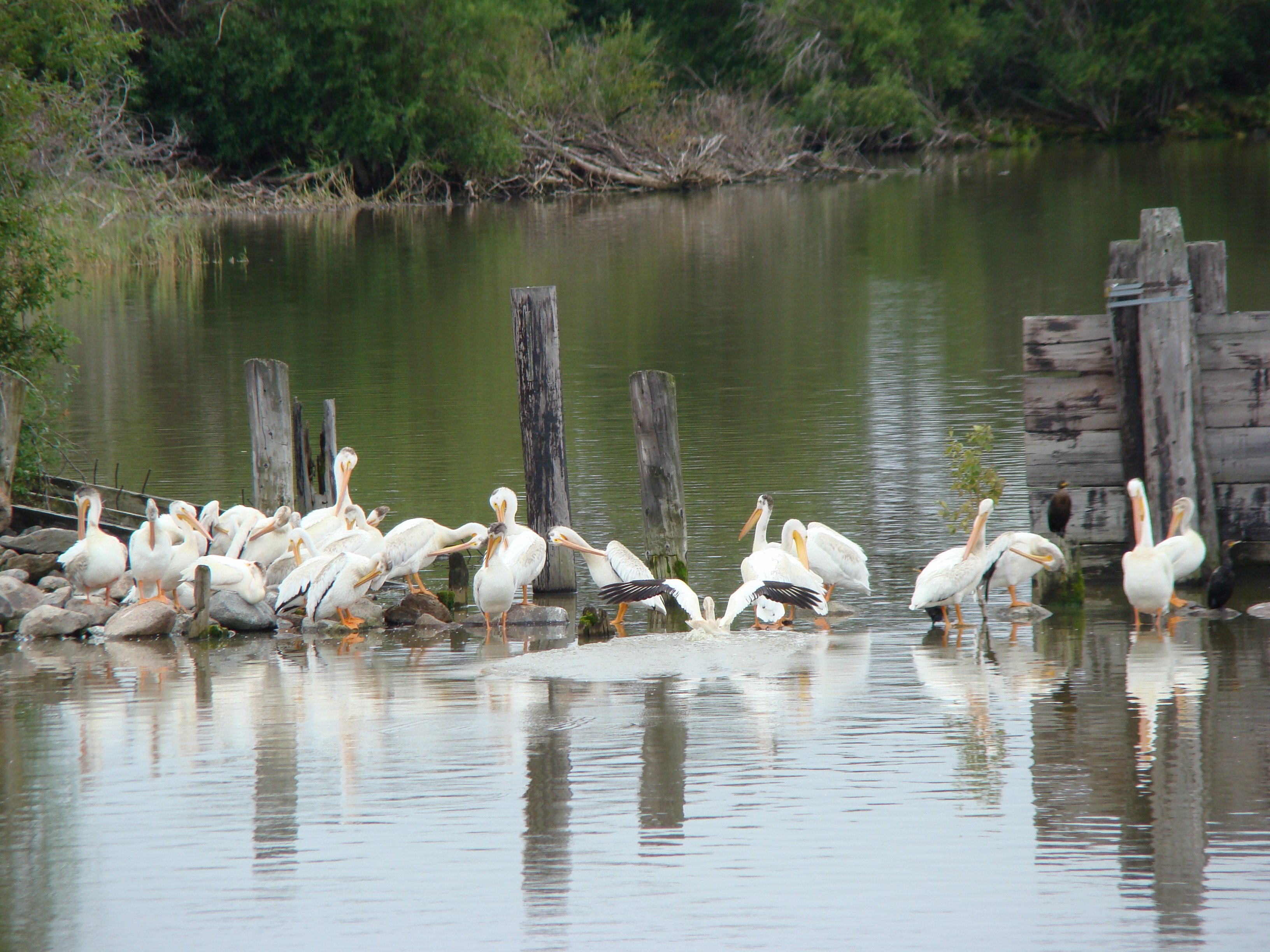 고립되고 사람이 살지 않는 섬들은 펠리컨, 갈매기, 제비갈매기를 포함한 집단 번식 조류에게 둥지를 제공한다. 넓은 늪지, 해안 및 얕은 곳은 이 새들이 자신과 새끼에게 성공적으로 먹이를 공급할 수 있게 해준다. 파이프스톤 록스는 아메리카흰펠리컨에게 세계적으로 중요한 장소로 여겨진다. 1998년에는 당시 이 새의 전 세계 개체수의 약 3.7%가 이 바위 노두에서 둥지를 트는 것으로 확인되었다.[16] 같은 장소는 특히 검은제비갈매기를 포함하여 이 지역을 이용하는 집단 수생 조류의 수에서 북미 지역 내에서도 중요하다.[16] 다른 세계적으로 중요한 번식 지역은 걸 아일랜드와 샌드힐 아일랜드,[17] 리틀 조지 아일랜드[18] 및 루이스 아일랜드에서 발견된다.[19] 이 지역에서 둥지를 트는 조류에는 검은제비갈매기, 검은가슴갈매기, 아메리카큰갈매기, 검은머리갈매기, 가마우지넓적부리 등이 있다.