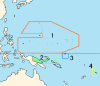 | 남양 군도 위임통치령 | 남양 군도 위임통치령 | 일본 | 남양 군도로 알려짐. 제2차 세계 대전 후 유엔 신탁통치령의 일부가 되어 미국이 관리함 | 팔라우 마셜 제도 미크로네시아 연방 북마리아나 제도 | ||||