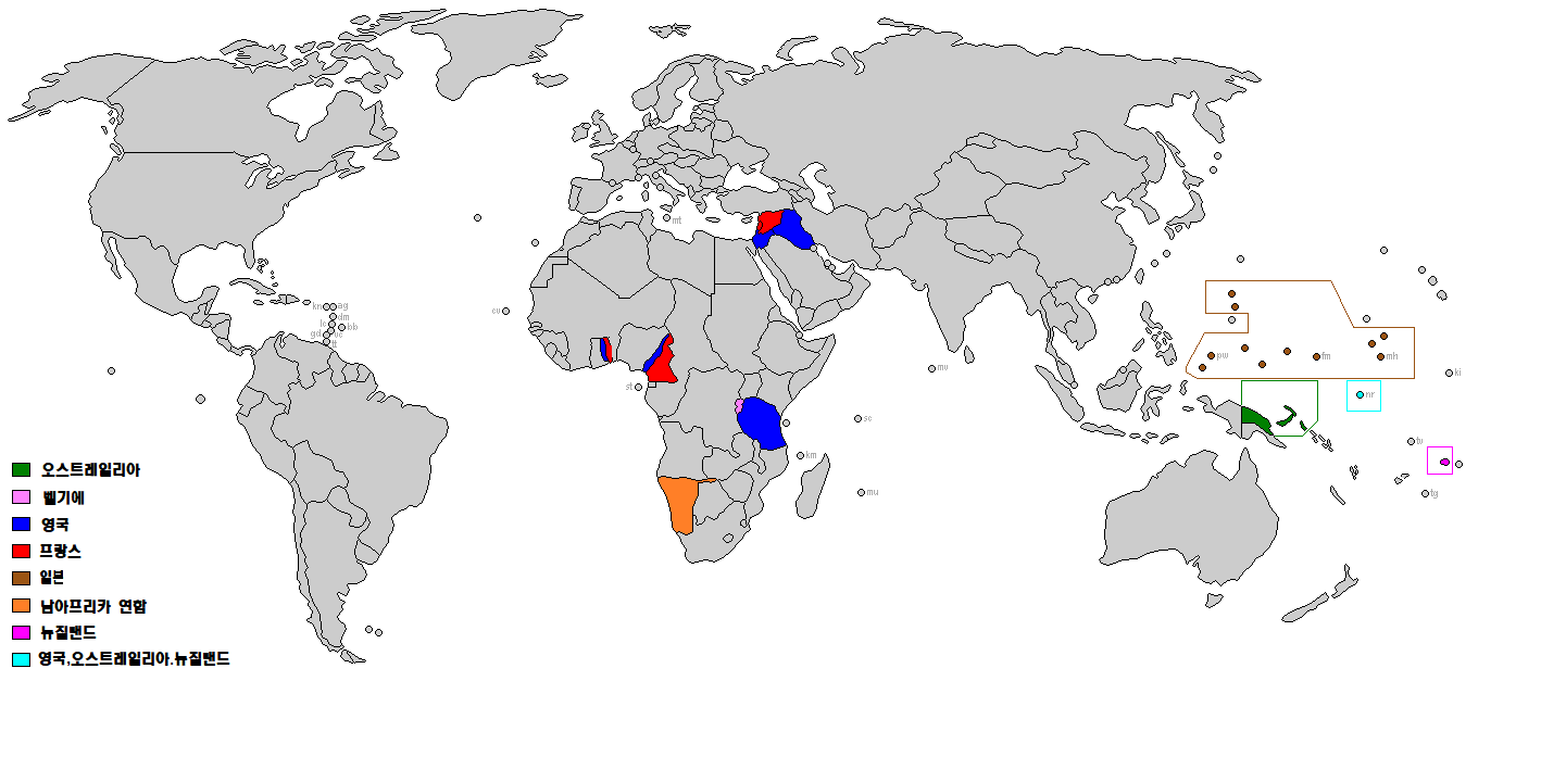 | 관리 국가 | 영국 프랑스 벨기에 일본 오스트레일리아 뉴질랜드 남아프리카 연방 |