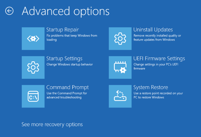 WinRE는 하드 디스크, 운영 체제 설치 디스크, 또는 PXE(Windows 배포 서비스)를 통해 부팅할 수 있다. 복구 콘솔의 기능을 계승했다.