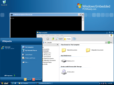 - Windows Embedded for Point of Service (WEPOS): 2005년 5월 24일에 공개되었으며, 윈도우 XP SP2를 기반으로 판매 시점 정보 관리(POS) 시스템에 사용하도록 설계되었다.[53] Windows Update Agent를 통해 업데이트를 받을 수 있는 첫 번째 임베디드 버전이었다.[45] 2008년 10월 8일에는 WEPOS용 서비스 팩 3(SP3)가 공개되었다.[46]