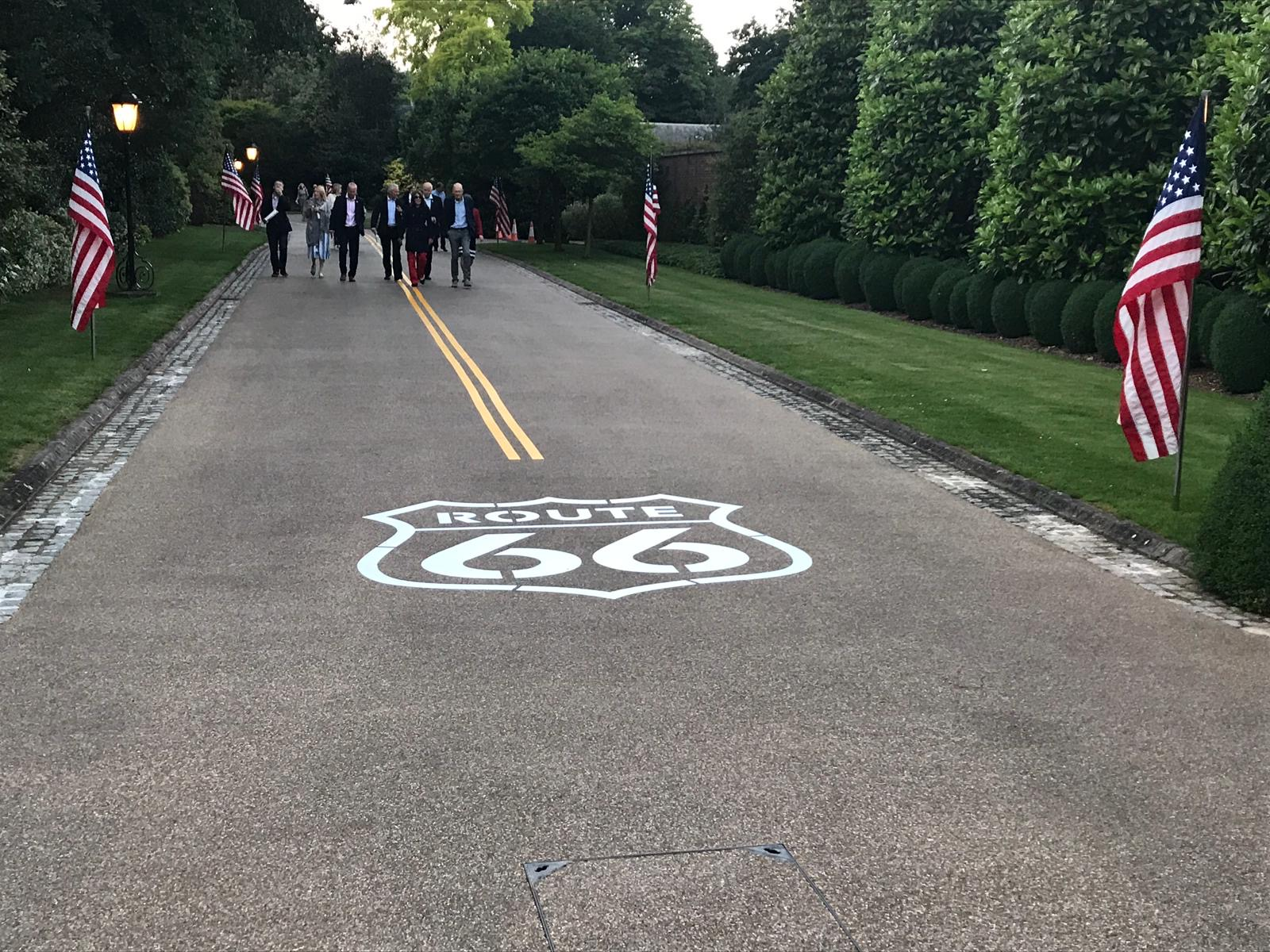 Route 66 테마의 진입로, 뒤쪽 부지를 정문과 연결함