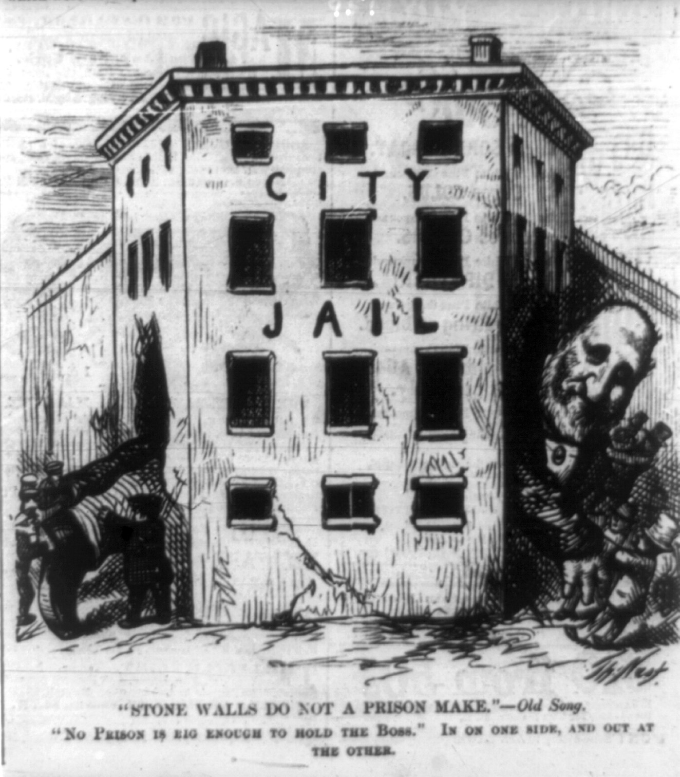 트위드는 수개월 동안 ''뉴욕 타임스''와 ''하퍼스 위클리''의 만화가인 토머스 나스트로부터 공격을 받았다. 트위드는 나스트의 만화에 대해 "저 망할 그림들을 멈춰. 나는 신문이 나에 대해 뭐라고 말하는지는 별로 신경 쓰지 않아. 내 선거구민들은 읽을 줄 모르지만, 저 망할 그림들을 안 볼 수는 없잖아!"[32]라고 말했다고 한다. 하지만 그들의 캠페인은 대중의 지지를 얻는 데 제한적인 성공을 거두었다. 시의 장부를 검토하도록 강요할 수 있었지만, 타머니 사람이자 존 제이콥 아스터 3세, 은행가 모세 테일러, 그리고 타머니의 행동으로부터 이익을 얻은 다른 사람들이 포함된 A. 오키 홀 시장이 임명한 6명의 사업가로 구성된 블루리본 위원회는 장부가 "충실하게 보관되었다"는 것을 발견하여 트위드를 몰아내려는 노력을 무력화시켰다.[33]