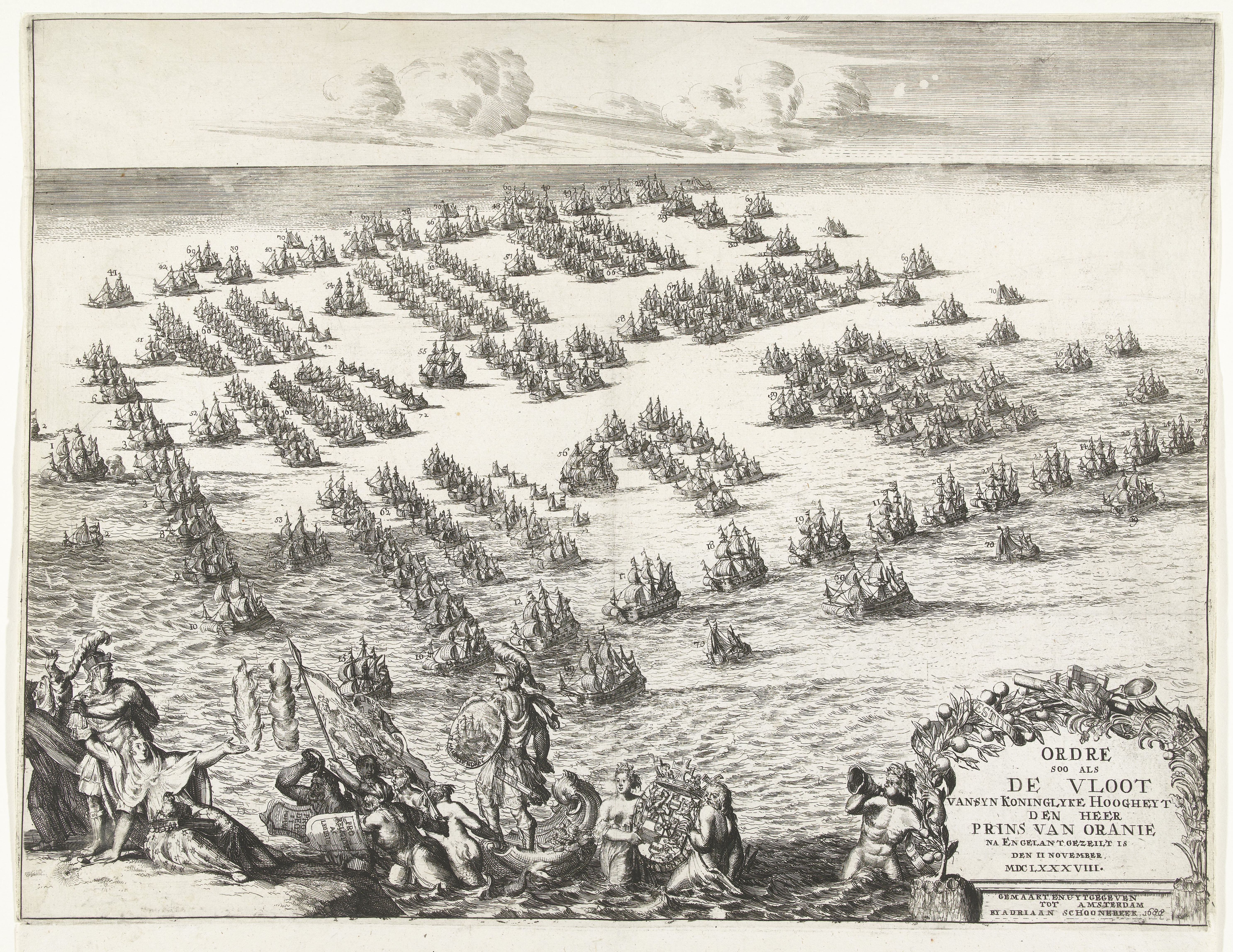 1688년 11월 5일, 빌럼 3세는 약 463척의 함선과 4만 명의 병력(네덜란드 정규군, 위그노 자원병, 영국 망명자 등 포함)을 이끌고 잉글랜드 남서부 브릭섬에 상륙했다.[74][75][76] 그는 "영국의 자유와 프로테스탄트 종교를 수호하겠다"고 선언했으며, 그의 상륙 소식에 제임스 2세의 지지 기반은 급속도로 무너졌다. 존 처칠과 같은 주요 군 지휘관들과 귀족들이 빌럼 3세에게 합류했고,[77] 제임스 2세는 저항을 포기하고 12월 11일 프랑스로 망명하려다 붙잡혔으나,[78] 빌럼 3세의 묵인 하에 12월 23일 최종적으로 프랑스로 떠났다.[78][79] 이 과정에서 유혈 충돌이 거의 없었기 때문에 명예혁명이라 불린다. 빌럼 3세는 무력으로 잉글랜드를 성공적으로 침공한 마지막 인물이다.[80]