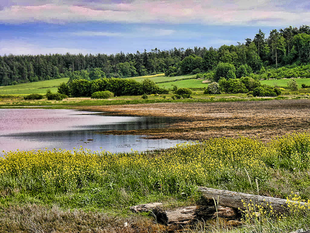 윗비섬에는 디셉션 패스 주립 공원 내의 크랜베리 호수, 디어 호수, 고스 호수, 론 호수(랭글리 타운 근처) 등 4개의 호수가 있다.[28]