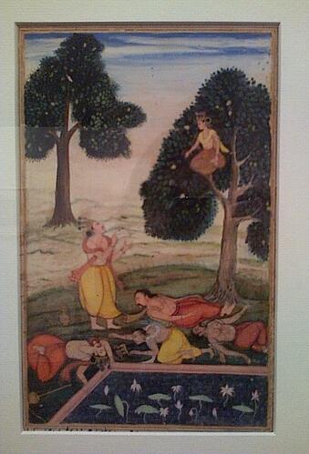 유배 중이던 판다바 형제들은 야크샤(Yaksha)가 지키고 있는 호수를 발견했다. 야크샤는 형제들에게 물을 마시기 전에 자신의 도덕적 질문에 답하라고 했지만, 네 명의 판다바는 비웃으며 물을 마셨다. 그 결과, 물에 질식하여 죽었다. 마지막으로 유디슈티라가 왔고, 야크샤가 던진 많은 질문에 답했다. 야크샤는 유디슈티라의 답변에 만족하고, 형제 중 한 명을 되살릴 기회를 주었다. 유디슈티라가 나쿨라를 선택하자, 야크샤는 그 이유를 물었다. 유디슈티라는 쿤티의 아들은 자신이 살아있지만, 마드리의 아들은 아무도 살아있지 않으므로 나쿨라를 선택했다고 대답했다. 야크샤는 다시 감명받아 모든 판다바 형제들을 되살렸다.[22]