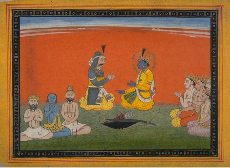 유배 기간이 끝났을 때, 두료다나는 유디슈티라의 왕국을 돌려주기를 거부했다. 유디슈티라는 평화적으로 왕국을 되찾기 위해 여러 외교적 노력을 기울였지만 소용이 없었다. 다른 방법이 없자 유디슈티라는 전쟁을 시작했다.[24]
