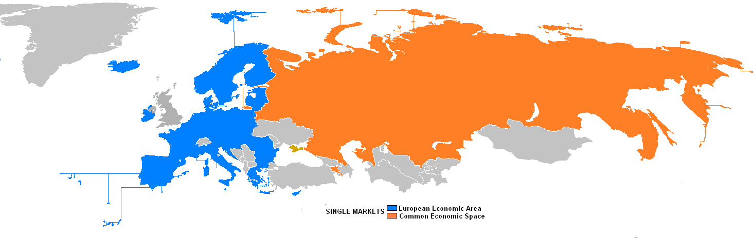 러시아-유럽 연합 관계의 일환인 러시아-EU 4대 공동 공간 구상은 러시아와 EU의 통합 강화, 무역 및 투자 장벽 제거, 개혁 및 경쟁력 증진을 목표로 하는 양측 간의 합의였다. 2010년 러시아 총리 블라디미르 푸틴은 리스본에서 블라디보스토크까지 이어지는 공동 경제 공간, 자유 무역 지역 또는 더욱 진전된 경제 통합을 촉구했다. 그러나 2014년 러시아-우크라이나 전쟁 이후 러시아-EU 관계가 악화되면서 상당한 진전은 없었고, 이 프로젝트는 중단되었다.