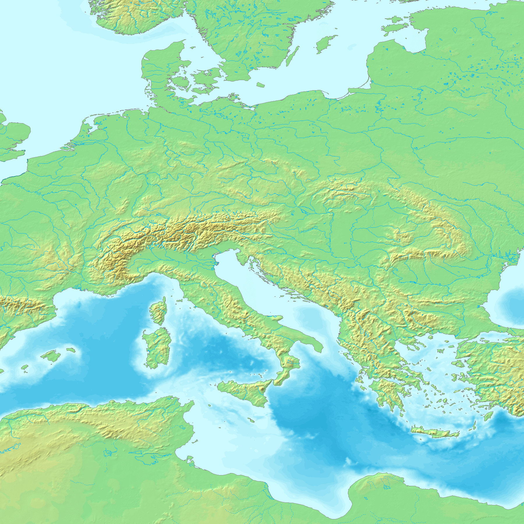 경도·위도 30도 간격의 지형도에 따른 유라시아 대륙의 위치 |