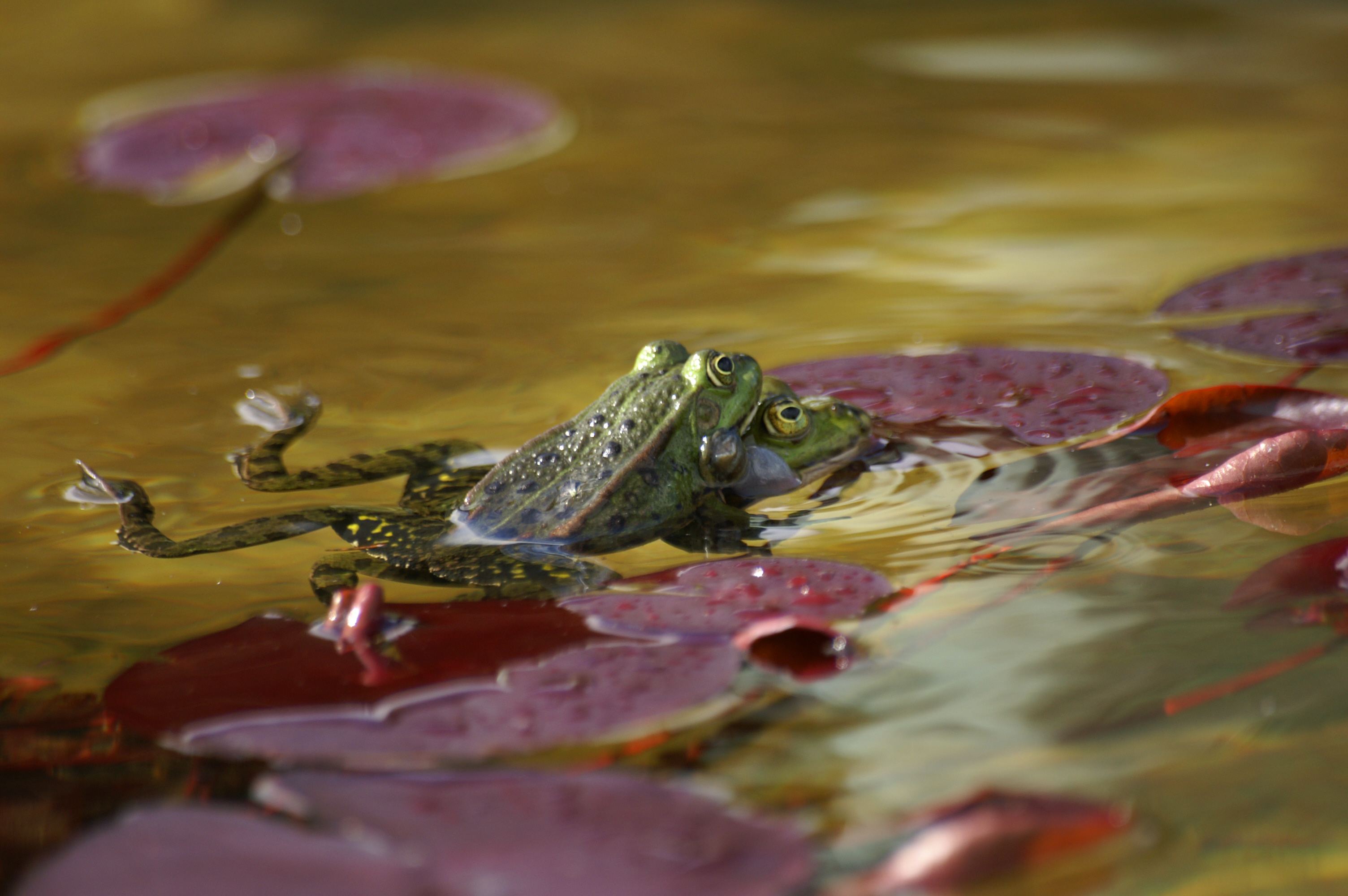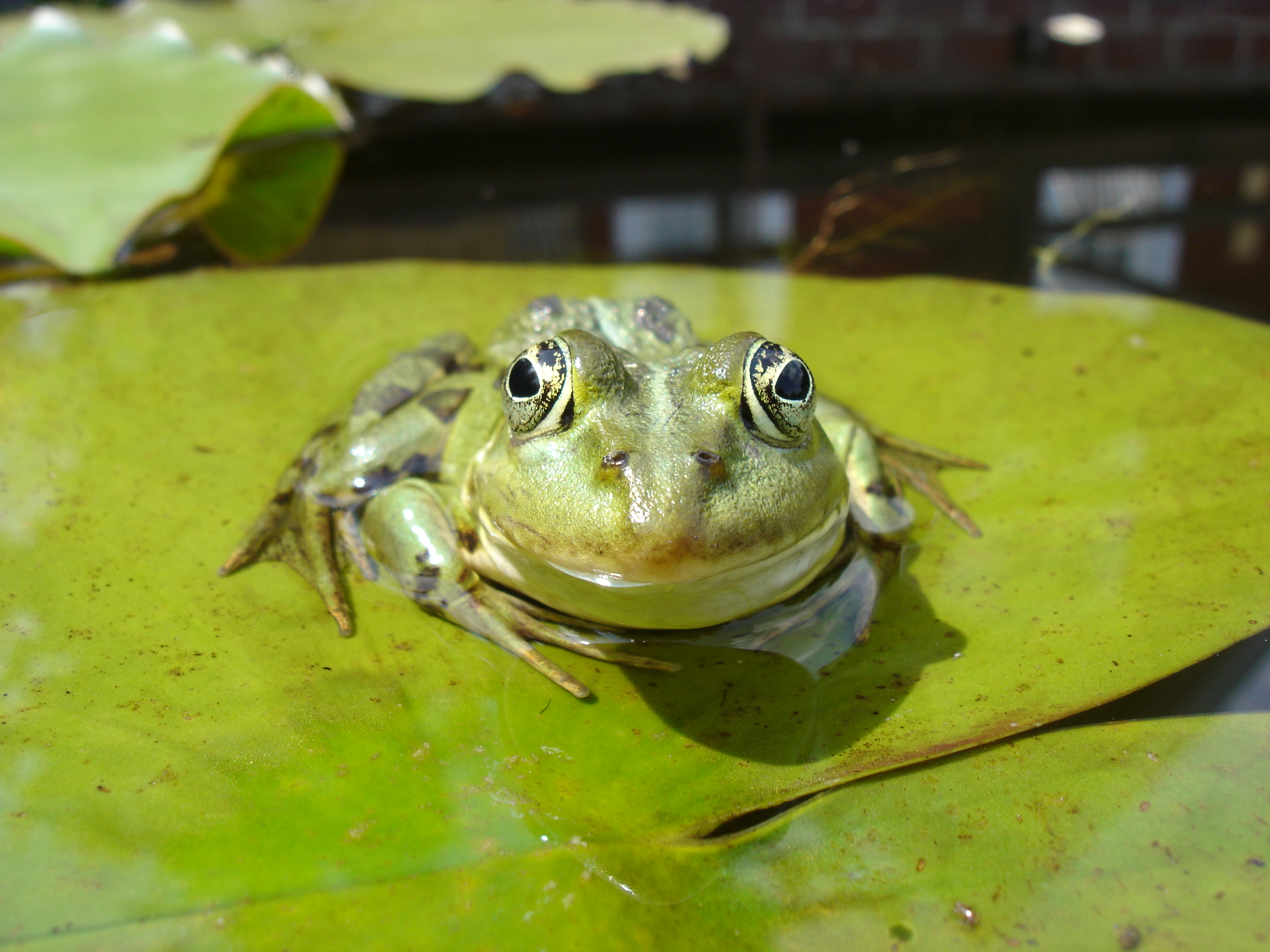 수련 위의 유럽식용개구리