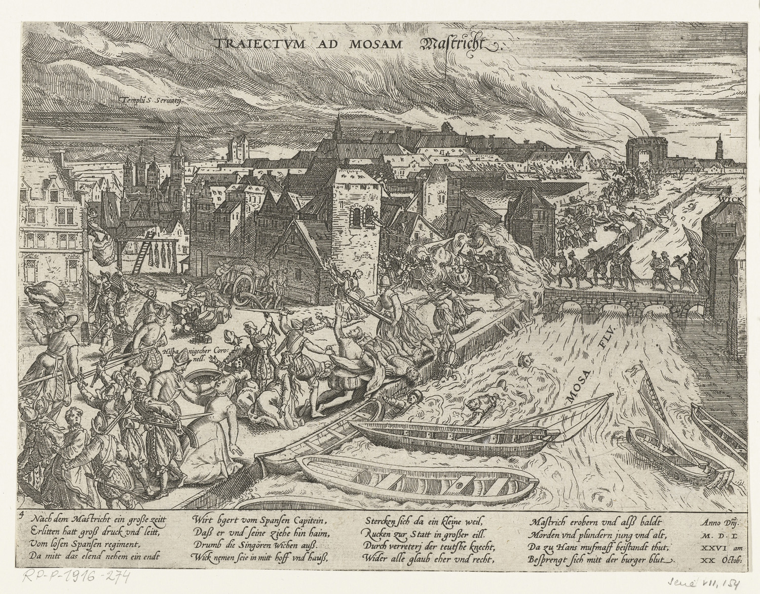 마스트리흐트 포위전은 4개월 이상 지속되었고, 결국 스페인이 승리했지만 엄청난 인명 피해가 발생했다.[32] 빌럼은 암살당했고, 잉글랜드가 네덜란드를 지원하면서 스페인은 어려움을 겪었다.[32] 스페인 무적함대는 1588년 잉글랜드에 패배했고, 네덜란드의 상황은 더욱 복잡해졌다.[32]