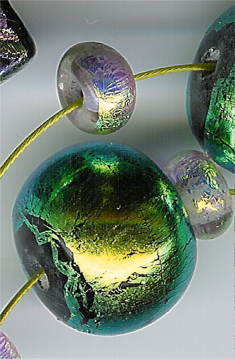이색성 유리는 고급 예술 구슬을 제작하는 데 사용된다. 이 유리는 표면에 금속 얇은 막이 융착되어 있어, 보는 각도에 따라 두 가지 색상이 변하는 금속 광택을 낸다.