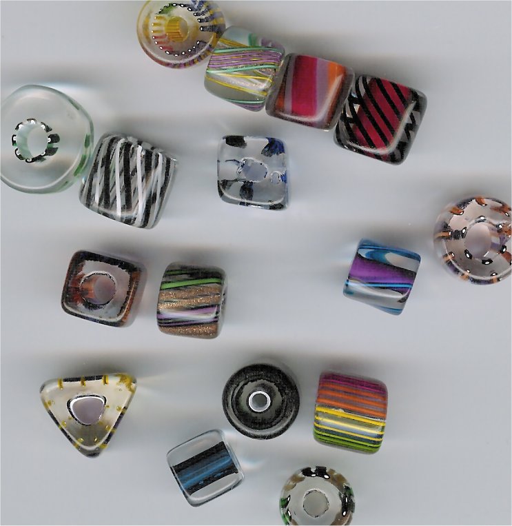 납유리(네온사인용)와 특히 붕규산 유리는 튜브 형태로 제공되어 유리 불어 구슬을 만들 수 있다.[5] (소다석회 유리는 금속 튜브 끝에서 불거나, 더 흔하게는 속이 빈 구슬을 만들기 위해 맨드릴에 감을 수 있지만, 전자는 드물고 후자는 진정한 입으로 부는 기술이 아니다.) 또한, 시트 유리나 분쇄 유리를 사용하여 구슬을 융합할 수 있다.