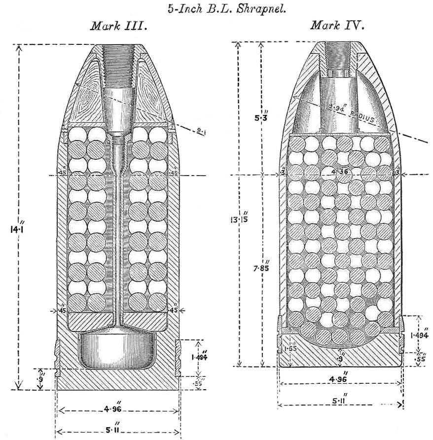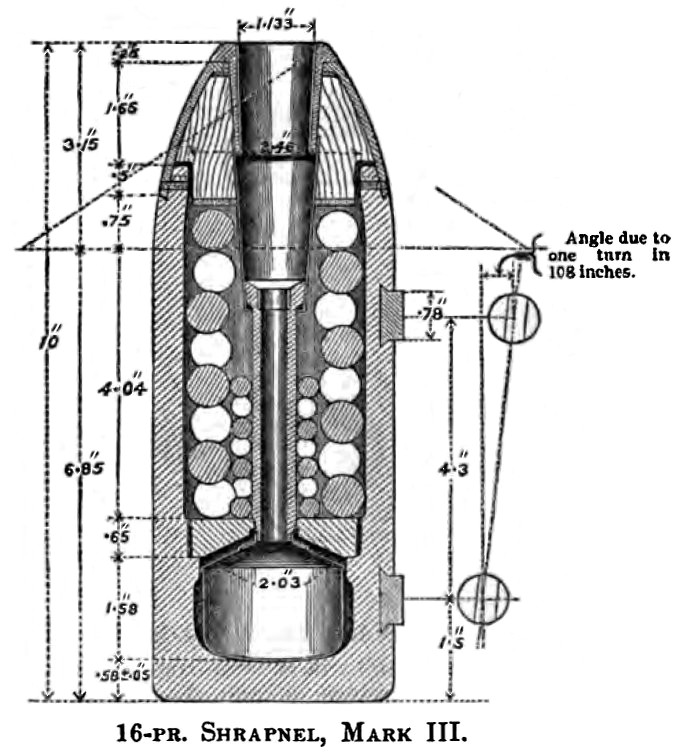 현대적인 얇은 벽의 단조 강철 설계는 곡사포용 유산탄 포탄을 만들 수 있게 했다.[7] 이상적인 설계는 포탄 기저부에 타이머 신관을 장착하는 것이었지만, 기술적 문제와 조기 점화 위험 때문에 초기에는 거부되었다.[7]
