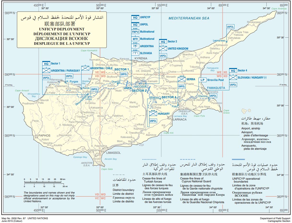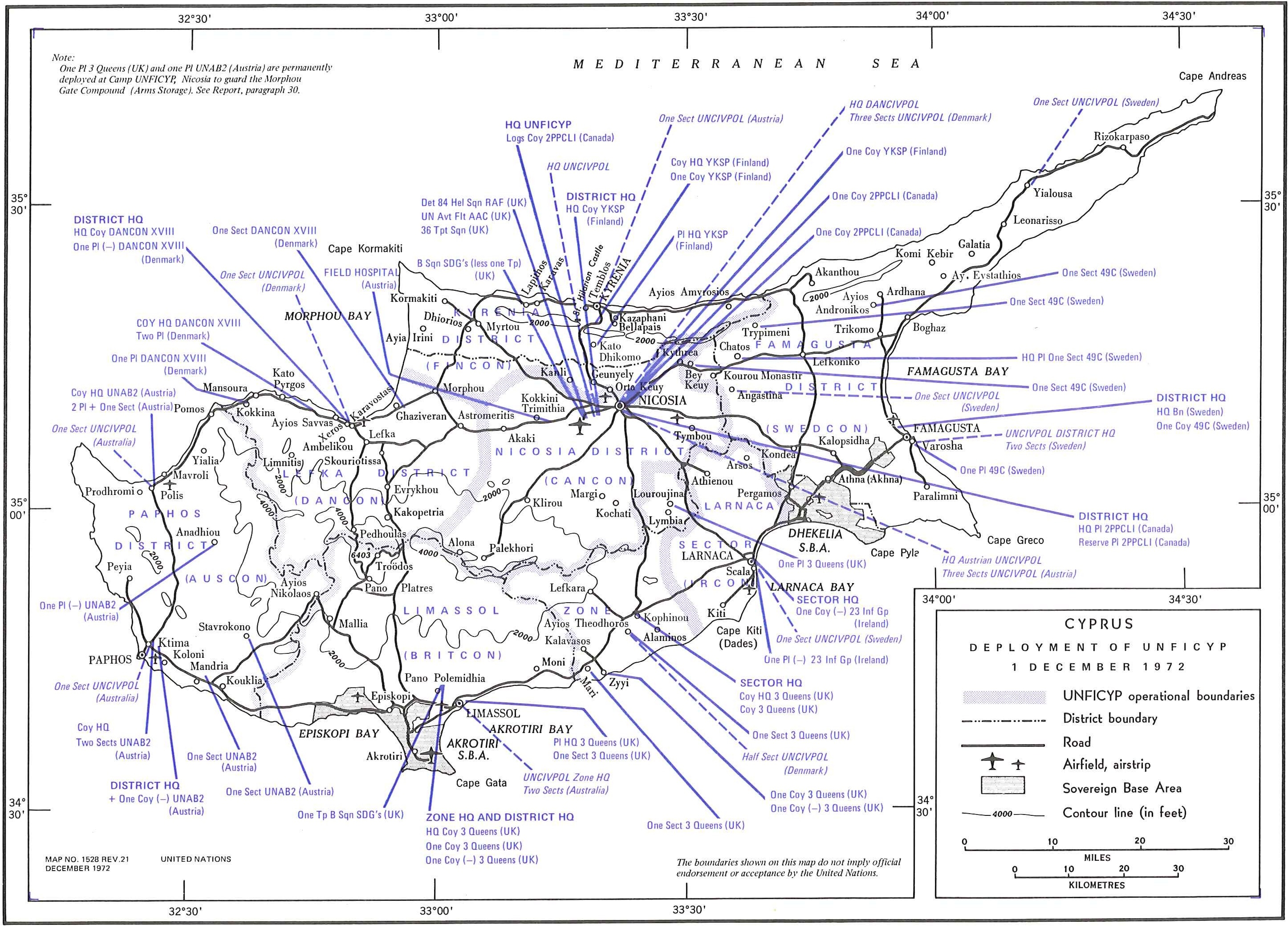 UNFICYP는 행정구 경계와 일치하는 지역에 각 국가별 부대를 배치했다.[9]