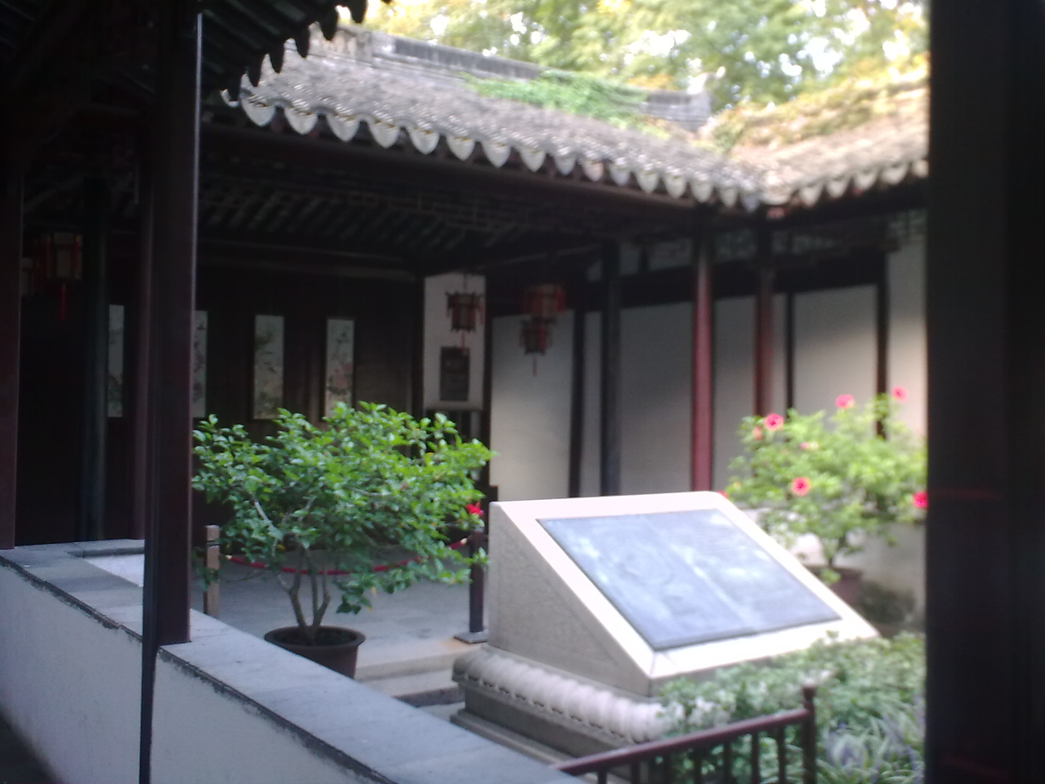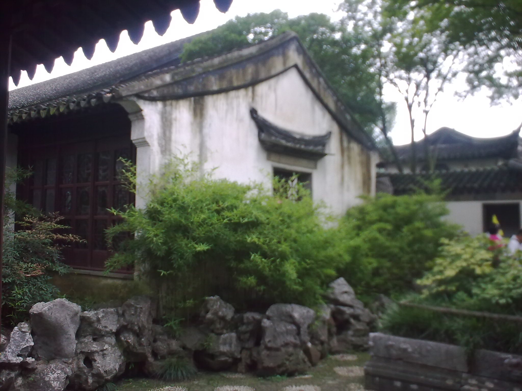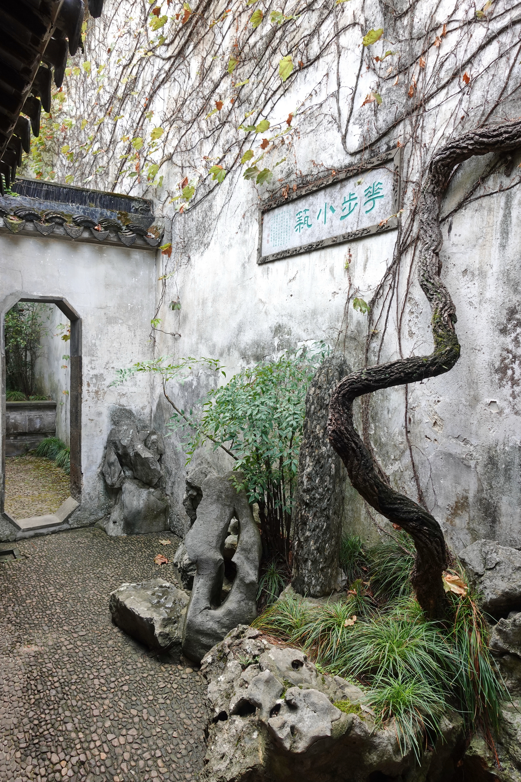 입구: 류위안루에 있는 정원 입구. 흰 벽과 석재 상인방의 단순한 스타일은 고대 쑤저우의 도시 디자인의 전형적인 특징이다. | |