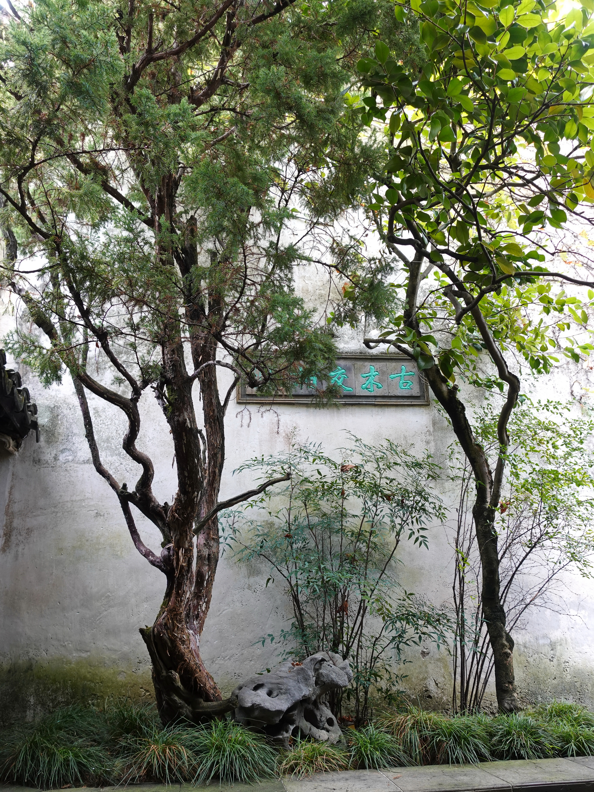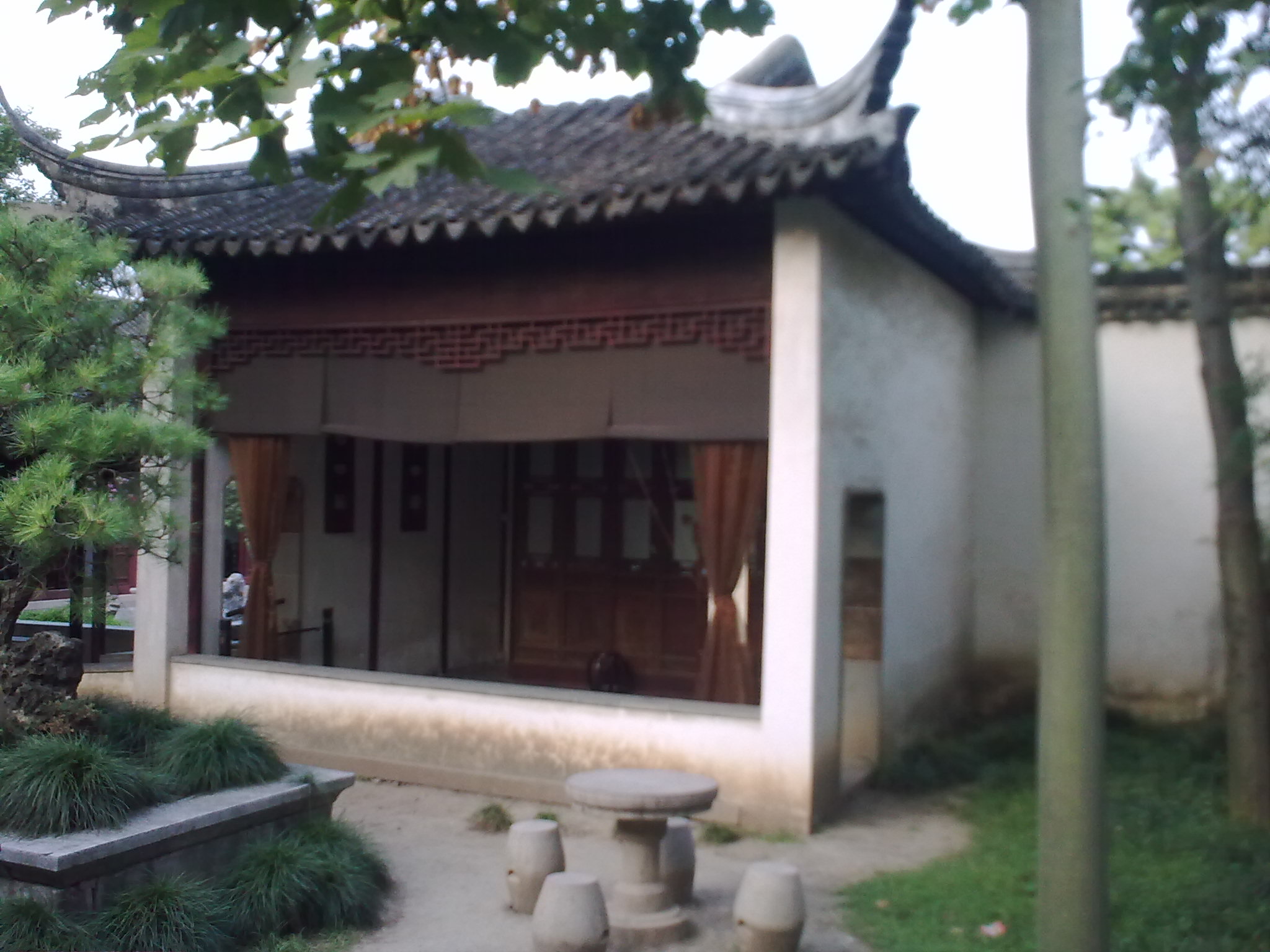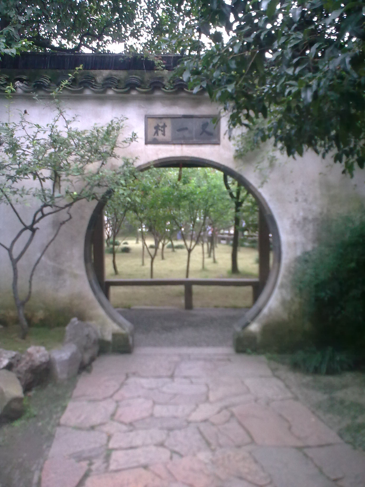 입구: 류위안루에 있는 정원 입구. 흰 벽과 석재 상인방의 단순한 스타일은 고대 쑤저우의 도시 디자인의 전형적인 특징이다. | |
